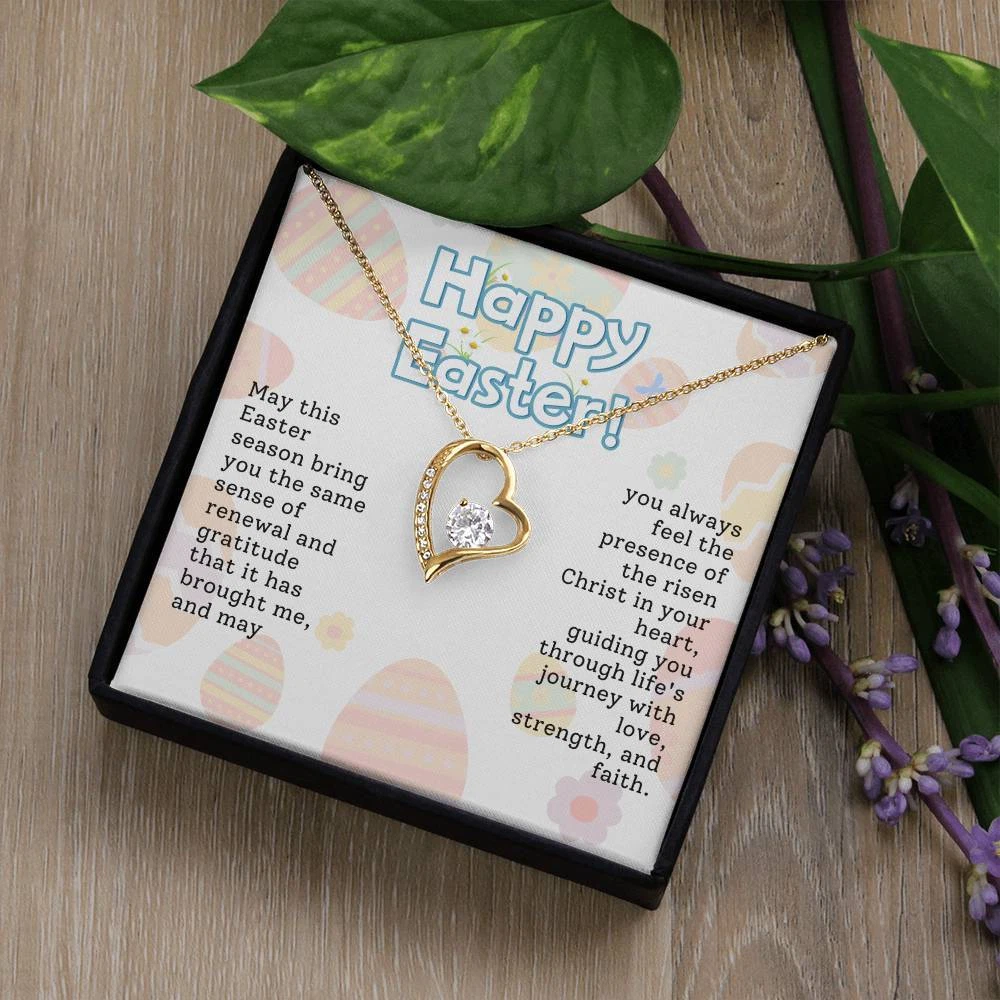 The dazzling Forever Love Necklace is sure to make her heart melt! This necklace features a stunning 6.5mm CZ crystal surrounded by a polished heart pendant embellished with smaller crystals to add extra sparkle and shine. Beautifully crafted with either a white gold or yellow gold finish, be sure to give her a classic gift she can enjoy everyday. 14k white gold finish or 18k yellow gold finish 6.5mm round cut cubic zirconia stone Pendant dimensions: 0.8" (2.2cm) height / 0.7" (1.8cm) width Adjustable chain length: 18" - 22" (45.72cm - 55.88cm) Lobster clasp attachment Your piece is lovingly packaged in a complimentary soft touch box for easy gifting. Elevate your presentation by upgrading to the mahogany style luxury box, which features a brilliant LED spotlight.