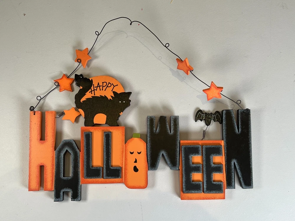 Happy Halloween Hanging Strips Window Door Holiday Wall Decoration Orange Black Color: Orange & Black Occasion: Halloween Handmade, Hand Painted In Very Good Condition