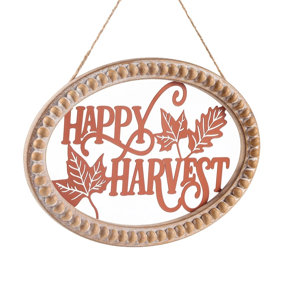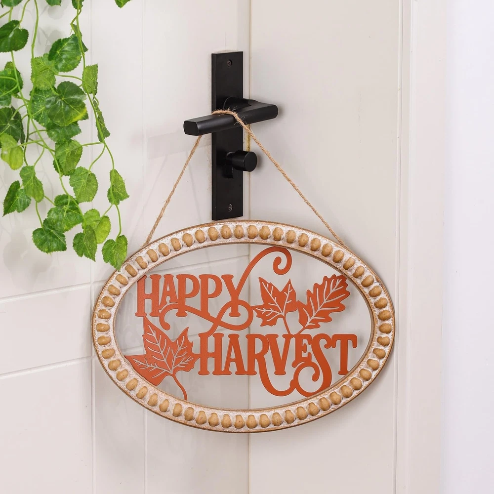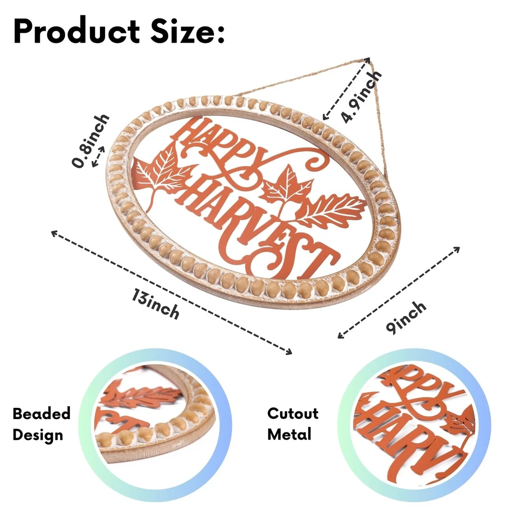 Happy Harvest Sign Farmhouse Autumn Wall Decor Orange Metal Thanksgiving Wall Decorations for Home Hanging Fall Decor with Wooden Beaded Frame Rustic Holiday Front Door Sign Product Details Color: Orange Brand: BAYSBAI MPN: 204027 UPC: Does not apply EAN: Does not apply Color: Orange Brand: BAYSBAI Material: Wood, Metal Theme: Harvest Recommended Uses For Product: Property Mounting Type: Wall Mount Product Dimensions: 13"L x 9"W Shape: Oval Style: Rustic Pre-printed: Happy Harvest Included Components: Happy Harvest Sign Item Weight: 15.3 ounces Manufacturer: BAYSBAI Country of Origin: China Item model number: 204027 Warm and Welcoming: Our fall wall signs brings a cozy and welcoming touch to your autumn decor. Its vibrant orange color and charming design create a festive ambiance that celebrates the harvest season. Oval Beaded Frame: The decor for thanksgiving is elegantly framed with an oval beaded frame, adding a touch of sophistication to its overall aesthetic. The beaded details enhance its visual appeal and create a captivating focal point. Versatile Hanging Options: With a convenient hanging rope on the back, this fall decor sign offers versatile display options. Hang it on walls, doors, or hooks, or even use it as a charming centerpiece for your fall-themed table settings. Durable Construction: Crafted from high-quality materials, our fall wall decorations for home is built to last. Its sturdy construction ensures long-lasting use, allowing you to enjoy its autumnal charm year after year. Celebrate the Harvest: Embrace the spirit of the harvest season with this harvest decor sign. Whether you're hosting a Thanksgiving gathering or simply want to add a touch of autumn to your home, our thanksgiving decorations for home door is the perfect choice.