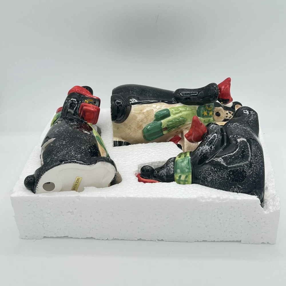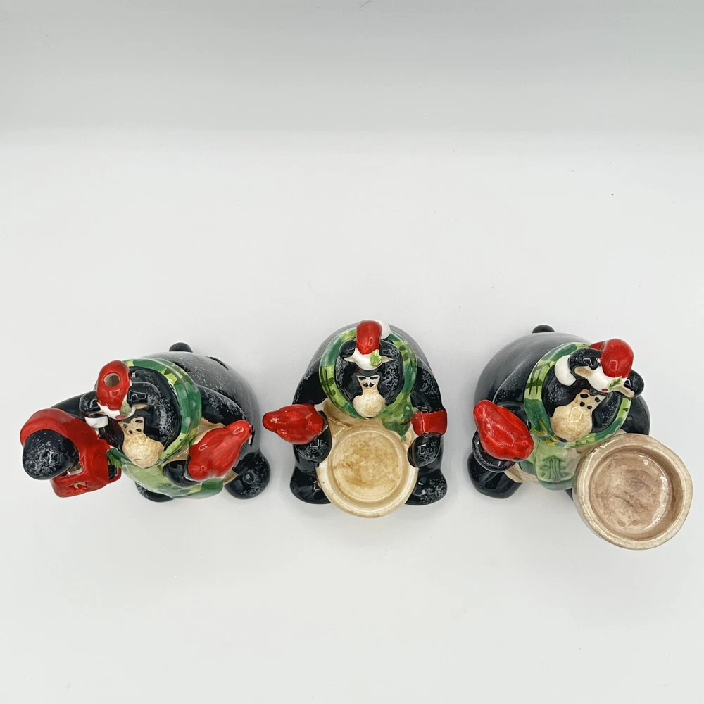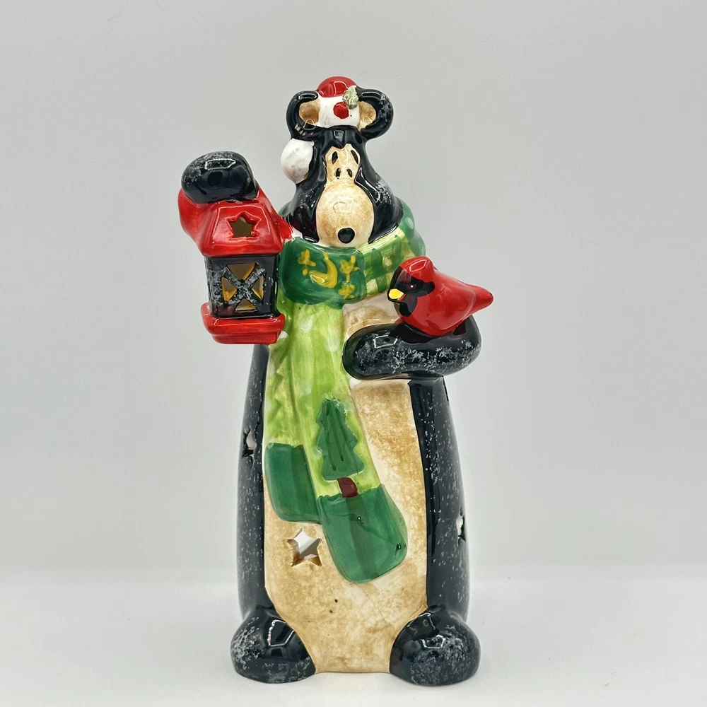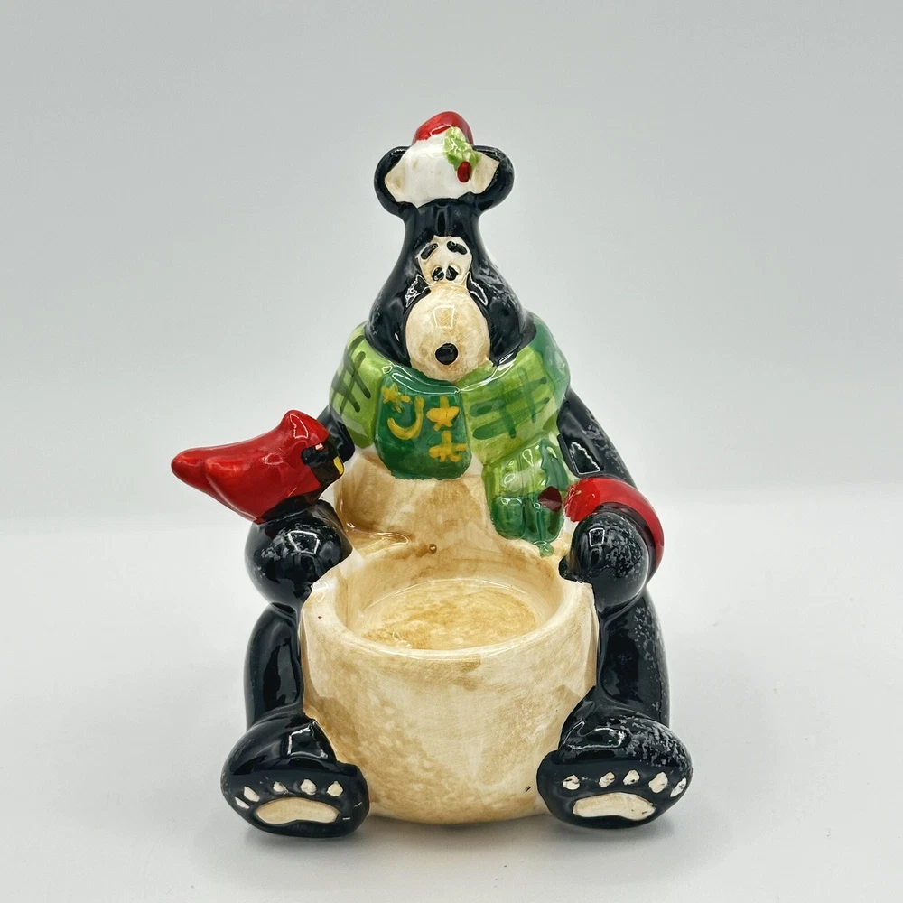 Add some festive cheer to your home with this Happy Holidays set of 3 black bears/cardinals ceramic tea light candle holders. Perfect for any room and suitable for Christmas, these candle holders are made from high-quality ceramic material and feature a cute design of bears. The multicolor adds a touch of playfulness to your holiday décor. Bring home the magic of the holiday season with these adorable candle holders. No chips or cracks.