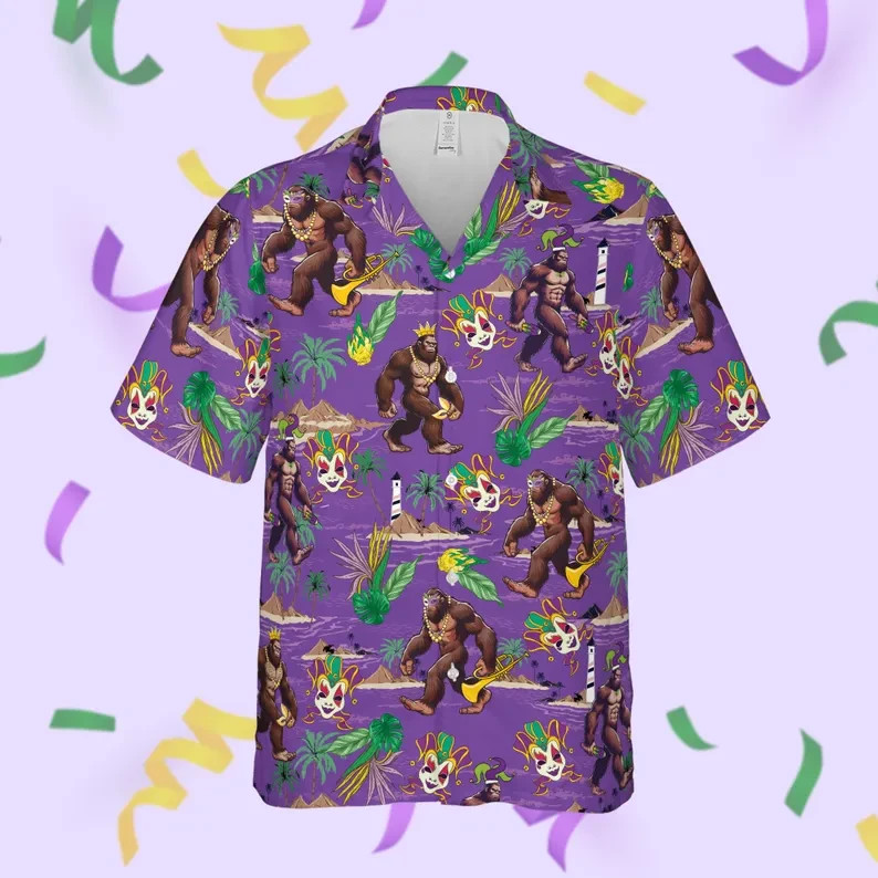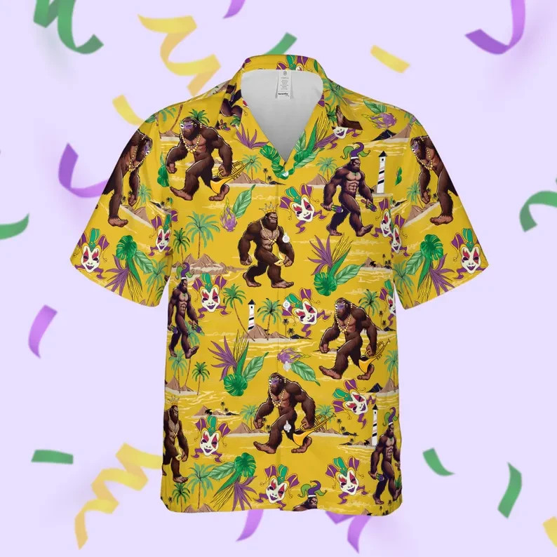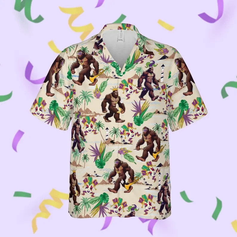 Happy Mardi Gras Bigfoot Hawaiian Shirt Aloha Beach Summer Party Gift