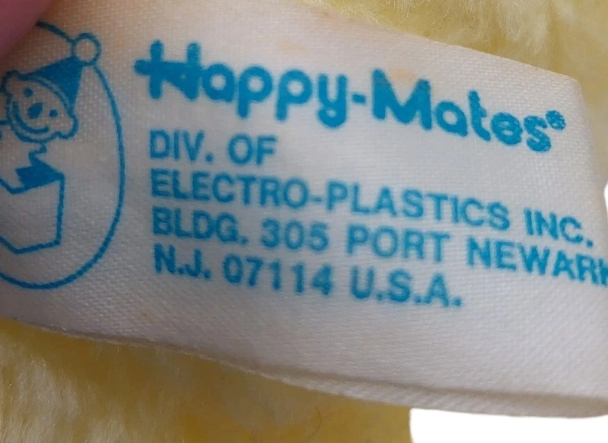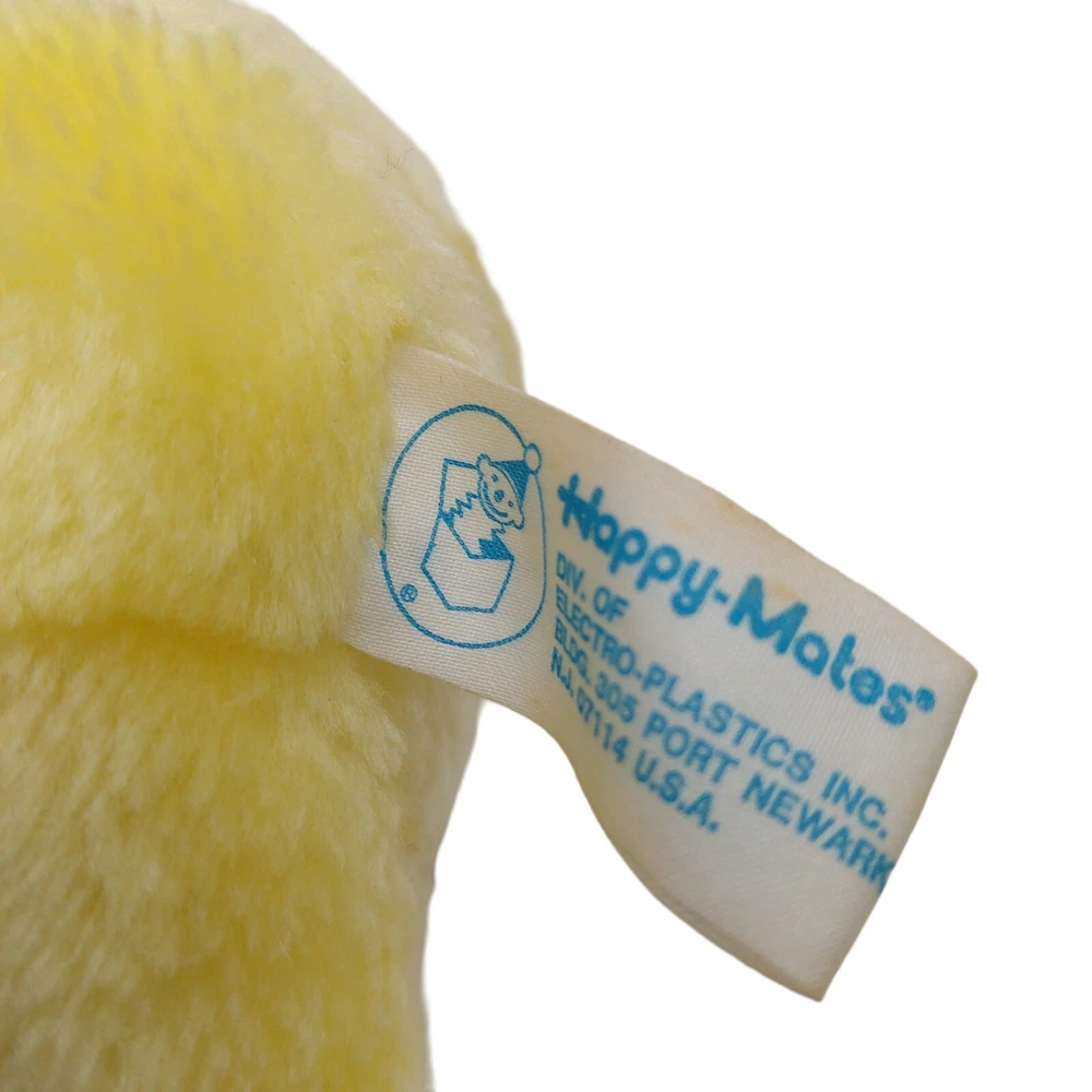 Character Family:Duck ChickRecommended Age Range:3+Country/Region of Manufacture:TaiwanUPC:Does not applyColor:YellowCustom Bundle:NoBrand:Happy MatesAnimal:chickgtin13:Does not applyAge Level:3-4 Years, 4-7, 8-11 Years, 12-16 Years, 17 Years & UpModified Item:NoType:Stuffed AnimalFeatures:VintageSize:Small (6-14 in)