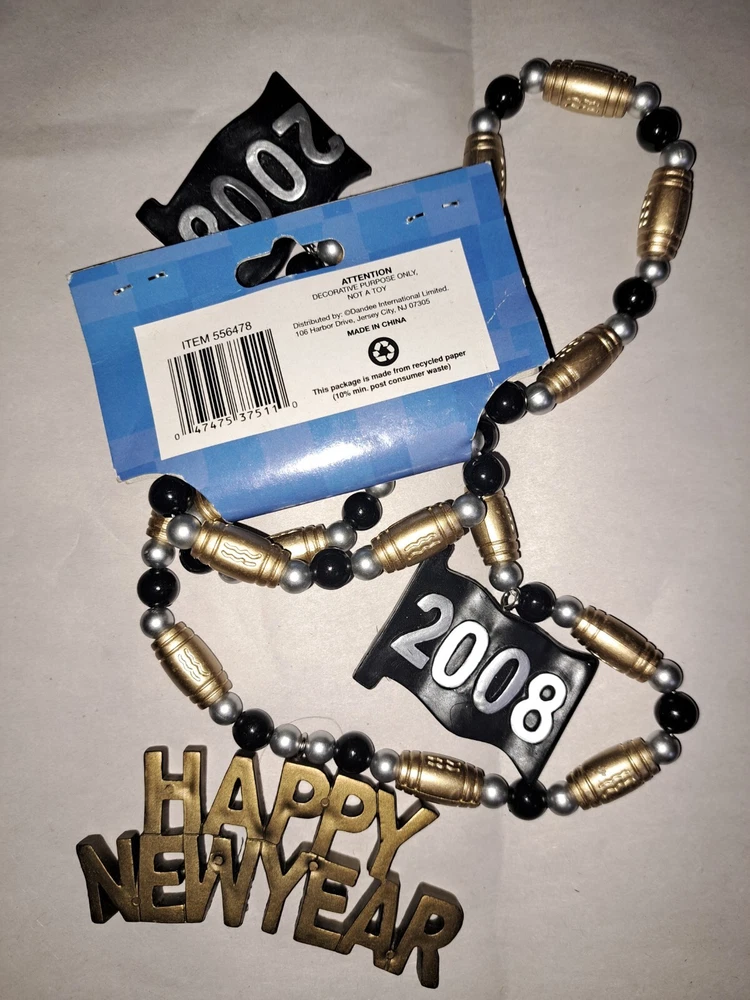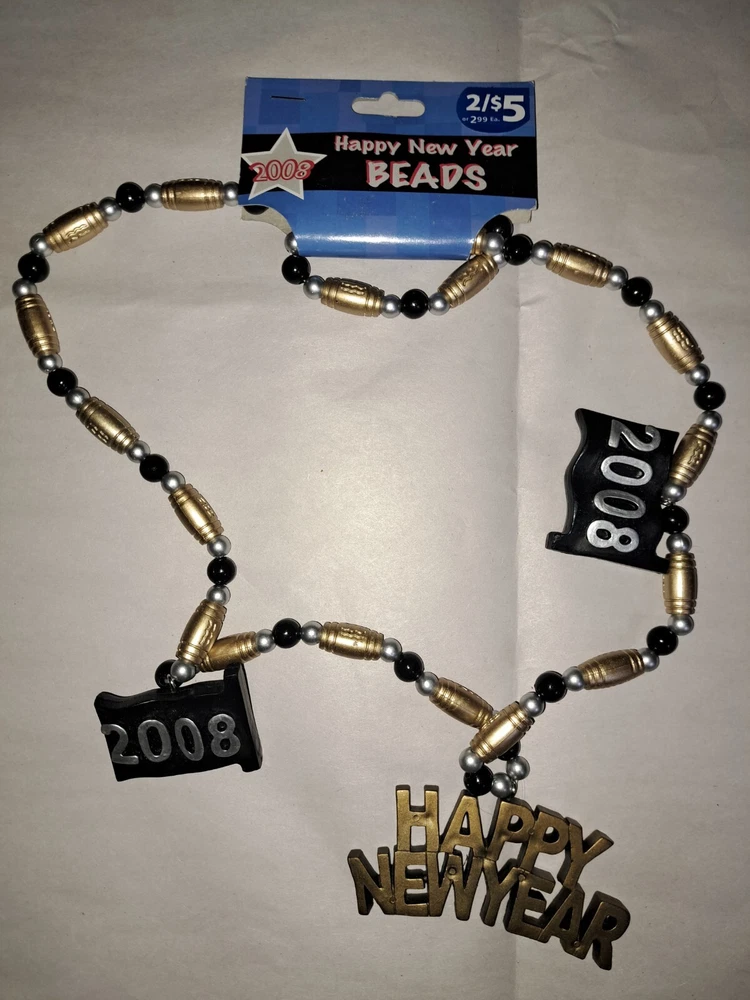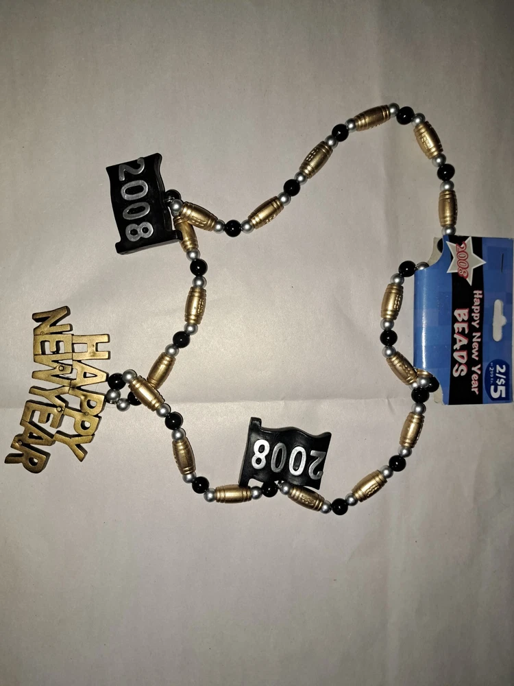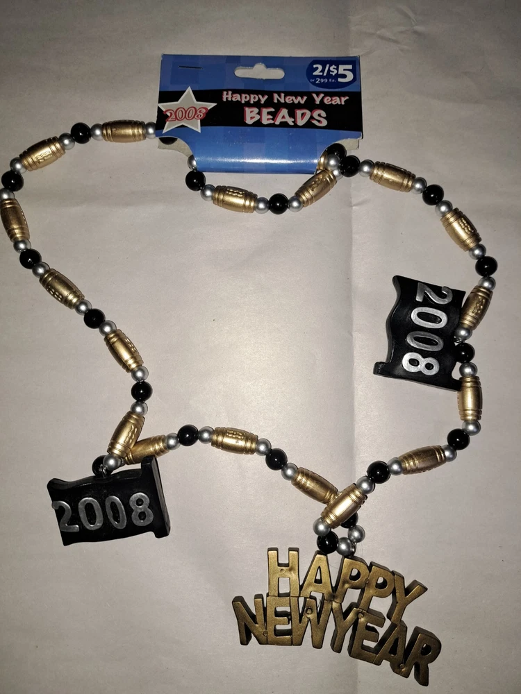 Happy New Years 2008 Beads / Necklace NEW Vintage New Year's Eve Mardi Gras. Still brand new. Perfect for any collector. Great for anyone who had a big event that year, ie. Wedding, anniversary, birth, etc.