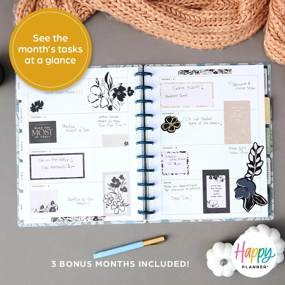 Store New Arrivals Add to Favorite View Feedback Contact Fast deliveries to the customer's home Quality customer service John Make the customers happy! Happy Planner Disc-Bound 12-Month Planner, Jan.–Dec. 2025 Daily, Weekly, and Monthly Planner, Big Size, Horizontal Layout, Green Garden, 72 Pages, 12 Dividers, 2 Sticker Sheets, 8.5" X 11" Description 2025 PLANNER: Our 2025 big planner features illustrated florals and shades of green. The big size has the most room for daily planning, writing, and decorating and is the perfect desk companion for school, work, or home. Write out your priorities and add stickers to personalize your spread! HORIZONTAL LAYOUT: This 2025 calendar planner for school or work was made for the traditional planner! The simple horizontal design has daily lined boxed spaces where you can write out important plans and priorities for the day. CUSTOMIZABLE: Make your agenda planner unique from the inside out. Our signature disc-bound spine allows you to add, remove, and rearrange pages. You can even change out the discs! Add stickers, pockets, and page markers to create a true-to-you piece. DESIGN: This 12-month tabbed weekly planner includes 12 months of calendars and weekly spreads, 3 bonus months, 2 sticker sheets, and premium-weight paper. The sturdy laminated covers protect the pages, and the plastic discs allow you to customize with accessories. OUR PROMISE: At Happy Planner, it’s our mission to spread happiness wherever we go, and we want to empower people everywhere to embrace the positive and Plan a Happy Life! With each purchase, you’ll get a little slice of joy that you can use every day. Product Description Happy Planner Fall Collection Find the perfect planner for you! The NEW Happy Planner 12-month planners have a new cover with the same fun designs you love! Our new planners come with 2 sticker sheets and 3 additional monthly spreads! With multiple dividers and stickers, our calendar planners can be personalized to fit your lifestyle. Both our classic and big-sized planners include solid discs that allow you to remove and insert pages and add lots of snap-in accessories to make your own personalized 2025 planner! Checkout all the new features! Sticker Sheets Each planner comes with 2 sticker sheets to help you stay on track with daily priorities and monthly goals! 3 Additional Months! Each planner comes with 3 additional monthly spreads. October 2025-December 2024 Disc-Bound System Our signature disc-bound spine allows you to add, remove, and rearrange pages. You can even change out the discs! Choose Your Perfect Layout Dashboard Layout The dashboard layout lets you see tasks, lists, and goals at a glance. It also has weekly pages with space for recording meetings and daily tasks. Horizontal Layout The horizontal layout was made for the traditional planner. This simple design has daily lined boxes where you can record important plans. More from the Happy Planner Add to Cart Add to Cart Add to Cart Add to Cart Add to Cart Add to Cart Customer Reviews 4.6 out of 5 stars 666 4.5 out of 5 stars 25 4.7 out of 5 stars 181 5.0 out of 5 stars 3 4.7 out of 5 stars 216 5.0 out of 5 stars 7 Price $19.99 $ 19 . 99 $11.99 $ 11 . 99 $34.99 $ 34 . 99 $24.99 $ 24 . 99 $16.99 $ 16 . 99 $19.99 $ 19 . 99 Dimensions 7” x 9.75” and 8.5” x 11” 5.75" x 8.25" 7” x 9.75” and 8.5” x 11” 4.75" x 9" 8.5” x 11” 4.75" x 9" Dividers 4 None 12 N/A 3 N/A Pages 60 80 92 30 60 30 Cover Type PP Hard Cover Laminated N/A Laminated N/A Disc-Bound ✔ ✘ ✔ ✘ ✔ ✘ Sheet Size Letter Calendar Type Gregorian Format Organizer, Student Calendar, Day to Day Calendar Paper Size Letter Color Green Garden Binding Hardcover Cover Material Polypropylene Material Paper Material Type Paper Pages 72 Pages Target Audience Adult, Student Year 2025 Recommended Uses For Product Daily, weekly, and monthly planning; school, work, or home use; customization with accessories Model Year 2025 ABOUT US We offer the best prices around on high quality products. Our E-store includes media such as books, movies, music and games while offering electronics, toys, sporting apparel, clothing, tools, general home, garden items and more. SHIPPING We are always working hard to ensure your package arrives as soon as possible. Please understand that some factors like weather, high postal traffic, and the performance of shipping companies are outside of our control. We offer free shipping to the lower 48 states and ship within 2 business days of payment, usually sooner. We do not accept P.O. Boxes. Please provide a physical address. For shipping outside of the continental USA, we only use eBay's Global Shipping Program. The item is shipped to KY and then sent to the rest of the world. International customers are responsible for all duties and taxes. Continue to 'check out' to calculate costs for shipping the item to your country. Messages regarding eBay's Global Shipping Program MUST be directed at eBay EXCLUSIVELY. RETURNS We offer a 30-Day Return Policy on items in which you are not completely satisfied with. You have the option of a full-refund or an exchange of the item. No returns are available on items shipped outside of the USA PAYMENT We accept PayPal. CONTACT US This page content is yet to come Please ad us to your favorite seller and visit again later Thank You CUSTOMER SATISFACTION We try our very best to make sure every customer is completely satisfied. If there's a problem, message us! We're happy to help. WE ACCEPT