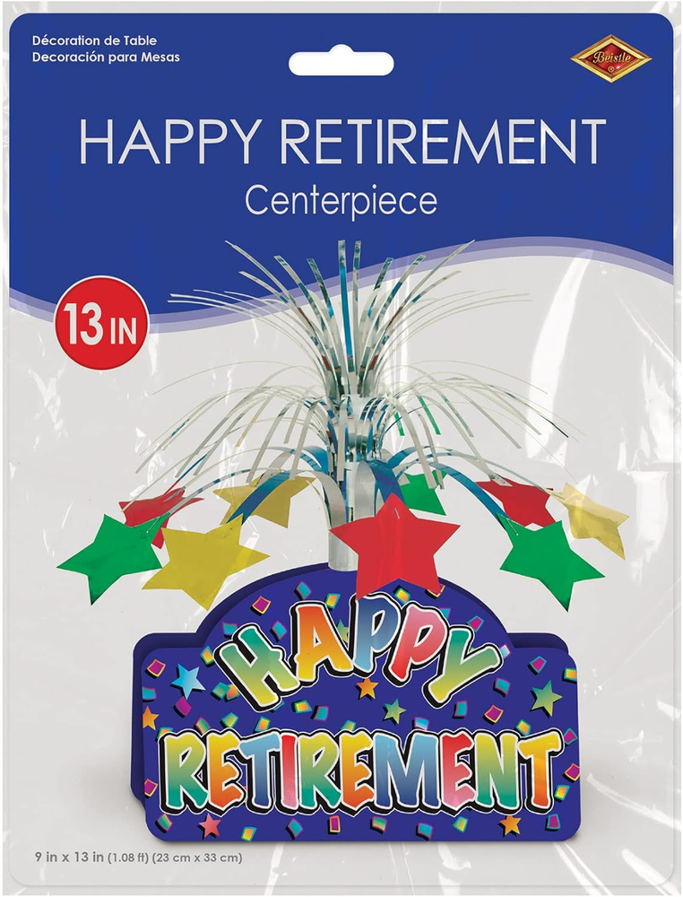 This item is a great value! 1 per package Retirement party item Centerpieces for festive occasions High Quality Beistle 50032 Happy Retirement Centerpiece. Make sure you have this Happy Retirement Centerpiece on all of the tables at the retirement party! The base is printed on board stock and it has a cascade-like top with stars. This centerpiece is 13 Inch tall.
