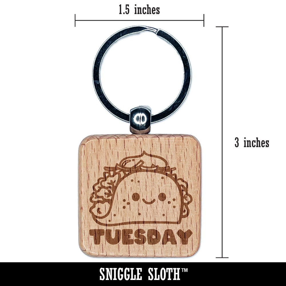 Happy Taco Tuesday Engraved Wooden Keychain Charm Gift