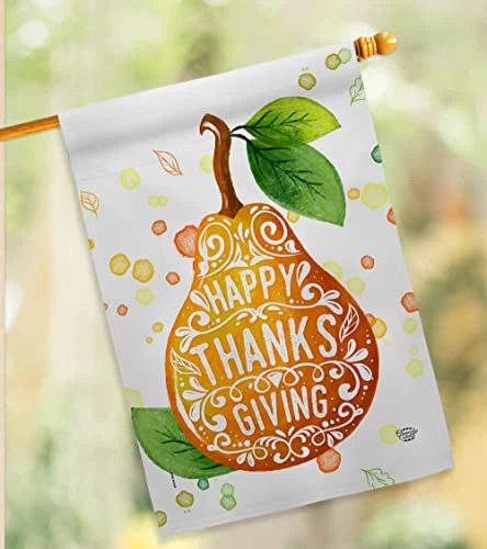 Happy Thanks House Flag Set Fall Thanksgiving Turkey Give Gobble Pumpkin Seas...