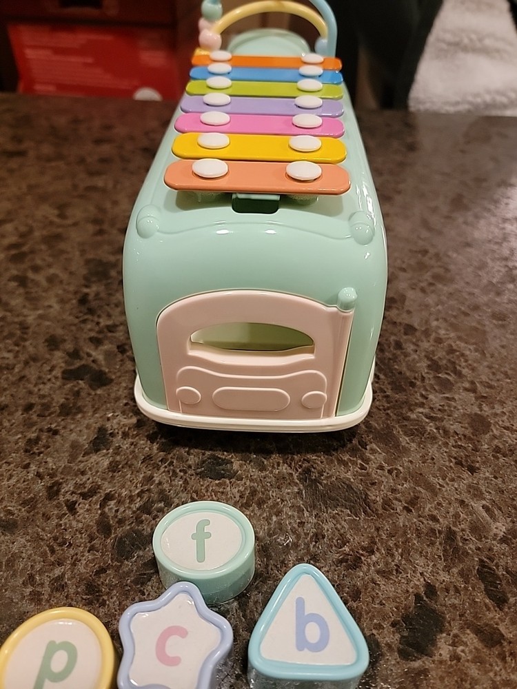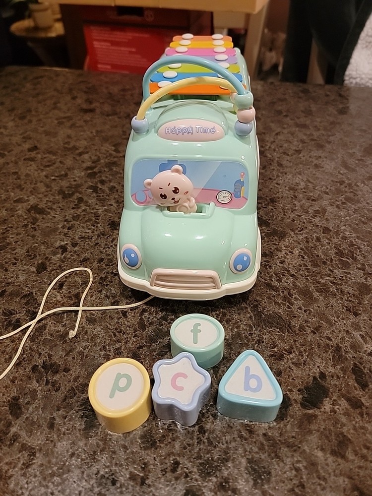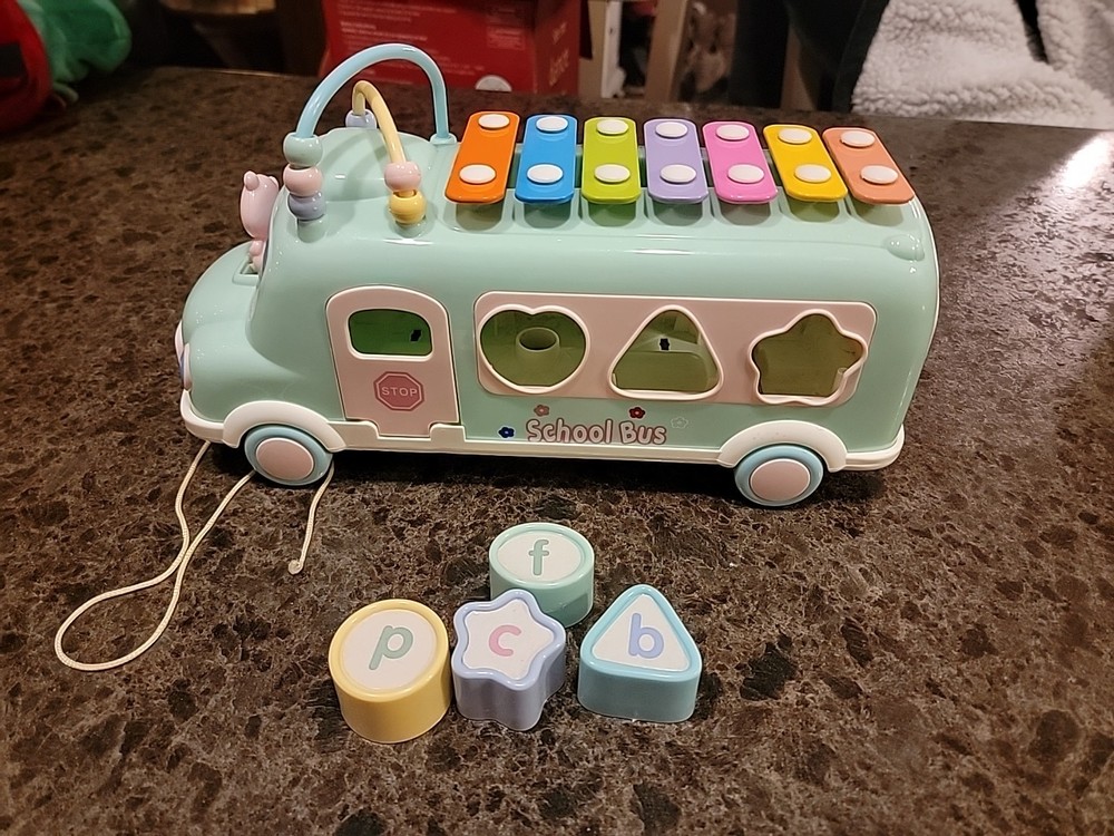 The Happy Time School Bus Baby Toy with Shapes is a musical toy designed to promote hand-eye coordination and motor skills in babies aged 2 years and up. With a colorful multicolor design, this toy features various shaped pieces that children can sort and place into the school bus. The toy's theme combines music and fun, making playtime engaging and educational for little ones. Ideal for both boys and girls, this unisex toy is a great way to entertain and stimulate young children while promoting important developmental skills.