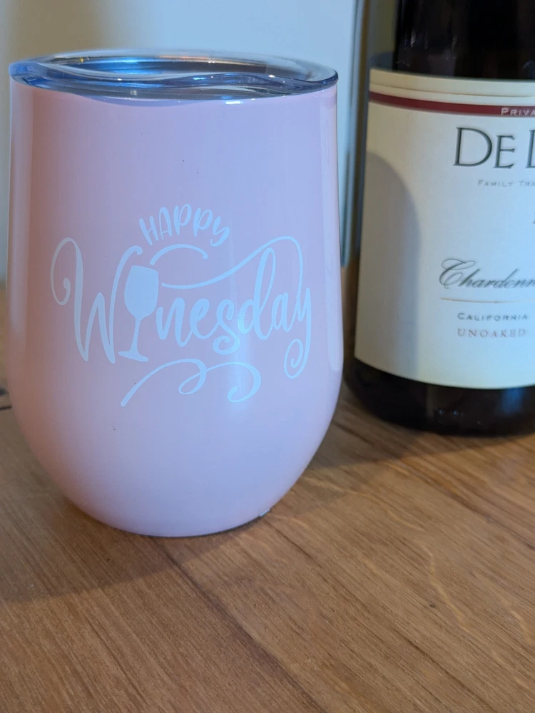 Description: Enjoy your favorite beverages in style with this 12 oz stainless steel wine tumbler , designed to keep drinks at the perfect temperature for hours. Featuring double-wall vacuum insulation , this tumbler keeps wine, coffee, cocktails, and more hot or cold while preventing condensation. The durable stainless steel construction ensures long-lasting use, while the included lid and straw make it easy to sip on the go. Perfect for outdoor gatherings, picnics, poolside lounging, or cozy nights in. Why You'll Love It: Double-wall vacuum insulation keeps drinks hot or cold for hours Durable stainless steel design for long-lasting use Spill-resistant lid with a convenient sipping hole Reusable straw included for easy and eco-friendly drinking Lightweight and portable , perfect for travel, camping, and events Great gift idea for wine lovers, coffee enthusiasts, and more Saying on Tumbler: Happy Winesday Color: Light Pink Hand wash recommended for longevity.