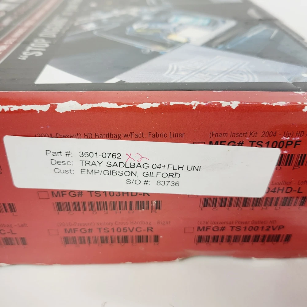 - Hardbagger Saddlebag Tray Insert Shelf fits 04-13 Harley Davidson Touring - Part Number: 3501-0762 - 30 DAY WARRANTY - PRIORITY SHIPPING - CHECK OUR FEEDBACKAND BUY WITH CONFIDENCE ---------------------------------------------------------------------------------------------------------------------- Fitment: Fits 94-13 Harley Davidson Touring Models. ALL OEM PART NUMBERS ARE PROVIDED FOR YOUR REFERENCE *INTERCHANGE ISDETERMINED BASED ON SEVERAL FACTORS AND RESEARCH DONE BY OUR SALES TEAM, PLEASE CONFIRM WITH YOUR LOCAL DEALER THE EXACT INTERCHANGE* -------------------------------------------------------------------------------------------------------------------- Shipping : Shipping is same day priority if ordered before 2:00pm Eastern Time. We ship Monday - Friday -------------------------------------------------------------------------------------------------------------------- Warranty: This item comes standard with a 30 day parts warranty. If in the event this item fails and a replacement item cannot be supplied a full refund will be issued once the item is returned back to us in its original condition Stock# 5036-B5