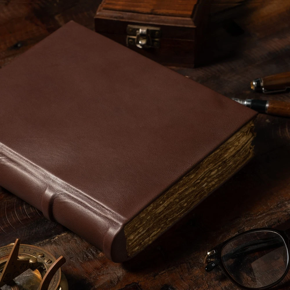 Hardcover Notebook, Vintage Journal, Leather Journal with Deckle Edge Paper | Journal For Women, Travel Journal, Daily Journal | Leather Notebook, Hardcover Journal, Journals For Writing Product Details Size: 8" x 6" Brand: NomadCraftsCo. MPN: NOMAD-HARDCOV-VIN-8-6 EAN: 5060892040732 UPC: Does not apply Brand: NomadCraftsCo. Color: Vintage Brown Theme: Book Pages: 200 Cover Material: Leather Style: Vintage Ruling Type: Plain Special Feature: Hard Cover Number of Items: 1 Specific Uses For Product: Art Journal, Sketchbook, Scrapbook Manufacturer: ‎NomadCraftsCo. Brand: ‎NomadCraftsCo. Item Weight: ‎1.63 pounds Package Dimensions: ‎8.78 x 6.97 x 2.13 inches Item model number: ‎NOMAD-HARDCOV-VIN-8-6 Color: ‎Vintage Brown Cover Material: ‎Leather Number of Items: ‎1 Size: ‎8" x 6" Ruling: ‎Plain Manufacturer Part Number: ‎NOMAD-HARDCOV-VIN-8-6 Date First Available: July 12, 2022 DISTINCTIVE LEATHER ARTISTRY- Nomad Crafts Co. vintage journal comes with a hardcover to protect the vintage sheets. Be charmed by this hardcover journal, featuring handmade cotton paper and a vintage aesthetic that is sure to captivate you. USE ANY KIND OF PEN - Sketch, Doodle, Write on your leatherbound writing journal with a Calligraphy Pen Fountain Pen, Brush Pen, Ball Pen, Acrylic Colours, Watercolor and many more. TIMELESS ELEGANCE - With its vintage style that is both classic and sophisticated, this journal is the perfect companion for those who love to write and draw. Made with high-quality leather materials, a hardcover journal that will last a lifetime. SUITABLE FOR MEN AND WOMEN: Its vintage aesthetic, complete with a leather hardcover, gives the journal a sophisticated and stylish look. The vintage journal provides enough space for writing, doodling, or sketching. NOMAD CRAFTS CO. PROMISE - We are very confident that you will fall in love with your Leather Hardcover Journal that we offer a 1-year guarantee. If you are not happy with your leather-bound writing journal for any reason, we will offer a full refund or a free replacement. No Questions asked! Bring out your inner creativity with the NomadCraftsCo. Antique Leather Bound Writing Journal for Women and Men!The deckle edged vintage paper looks and feels like a thousand years old is treat to write on. The paper is made from environmentally friendly cotton and jute canvas. The paper is acid-free and pH nuetral therefore is a timeless piece of art. No more worries about ink messing up the pages either. The thick pages are ideal for pen, pencil, crayons and even charcoal! We can guarantee no bleed through!The vintage leather journal is a perfect sketchbook, book of shadows,grimoire, wicca, calligraphy journal, scrapbook, art journal, leather sketchbook and manymore.The leather bound journal made from antique paper is a treasure that you can pass down the generations.The leather is soft and supple to the touch and smells amazing. The leather will age over time and will get better and better. Its the perfect travel companion to cherish memories or even to jot down precious ideas and there is not better way preserve your memories for your future generations.Get Yourself The Most Valuable Travel Companion Today – Never Have To Travel Alone Again.Handcrafted by skilled artisans with a lot of love and care. Here’s Why This Vintage Leather Bound Writing Journal Is What You Are Looking For:1. Soft Luxurious Durable and Leather Cover with Semi Precious Stone 2. 200 Pages of Thick Antique Vintage Cotton Paper which looks like thousand years old. 3. Sturdy Leather Binding Technique will make sure that the pages never fall off. 4. Medium size 8 by 6 inches rustic scrapbook/organizer easily portable.5. Being hand-made, no two journals are quite the same.