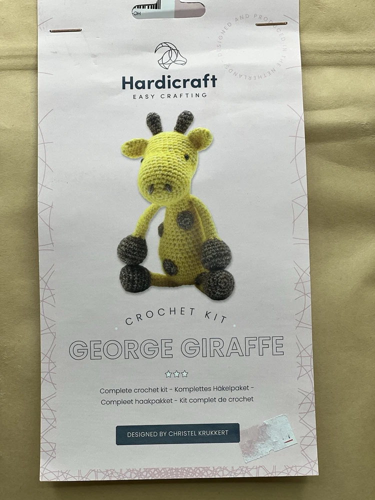 The product is a HardiCraft Do It Yourself Crochet Kit for making a George Giraffe and a new already made knitted giraffe hat. The kit includes materials to make one unit, referring to the giraffe and the hat is already completed. The brand, HardiCraft, is known for providing high-quality crochet kits and this particular kit is made in the Netherlands. It offers an opportunity for crafting enthusiasts to create their own adorable giraffe and matching hat through crochet.