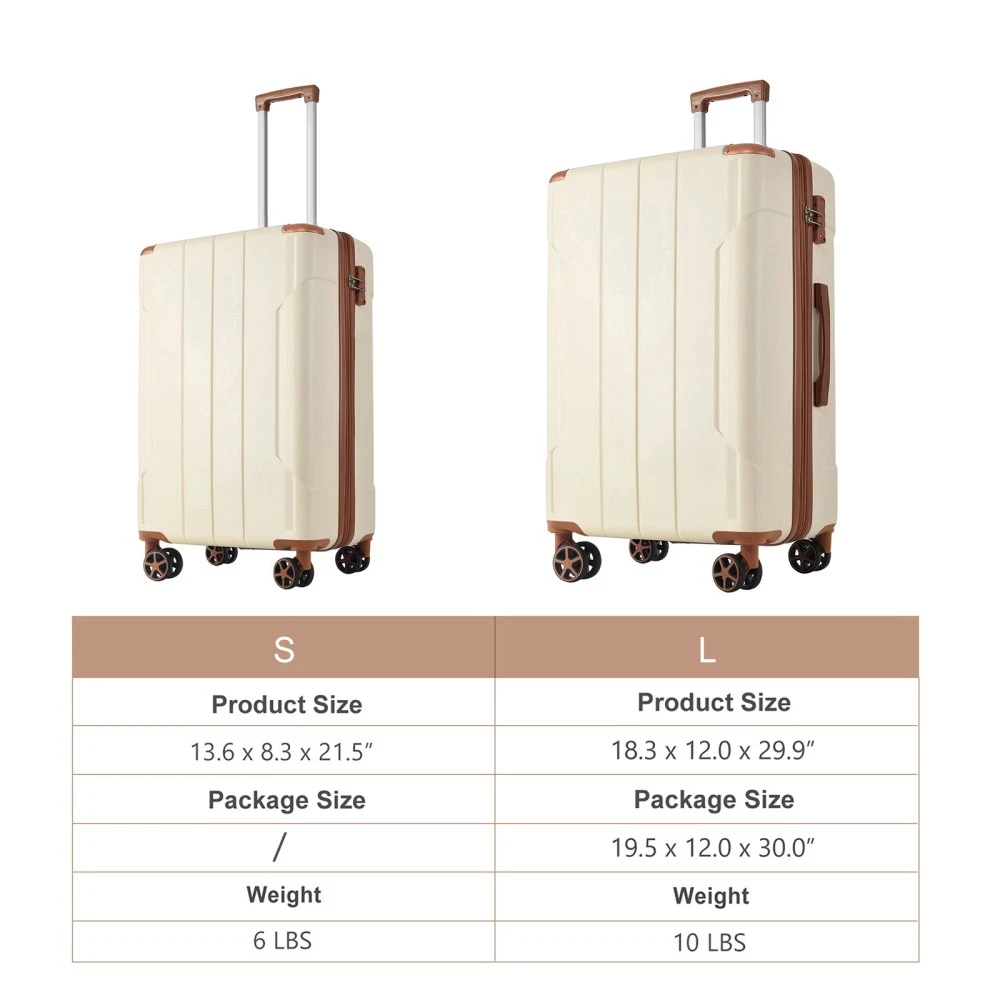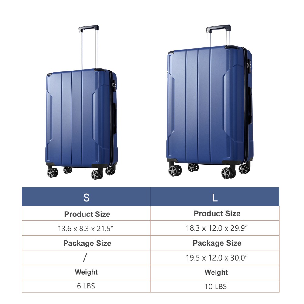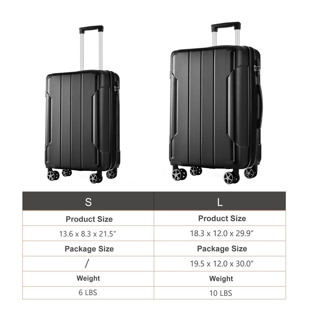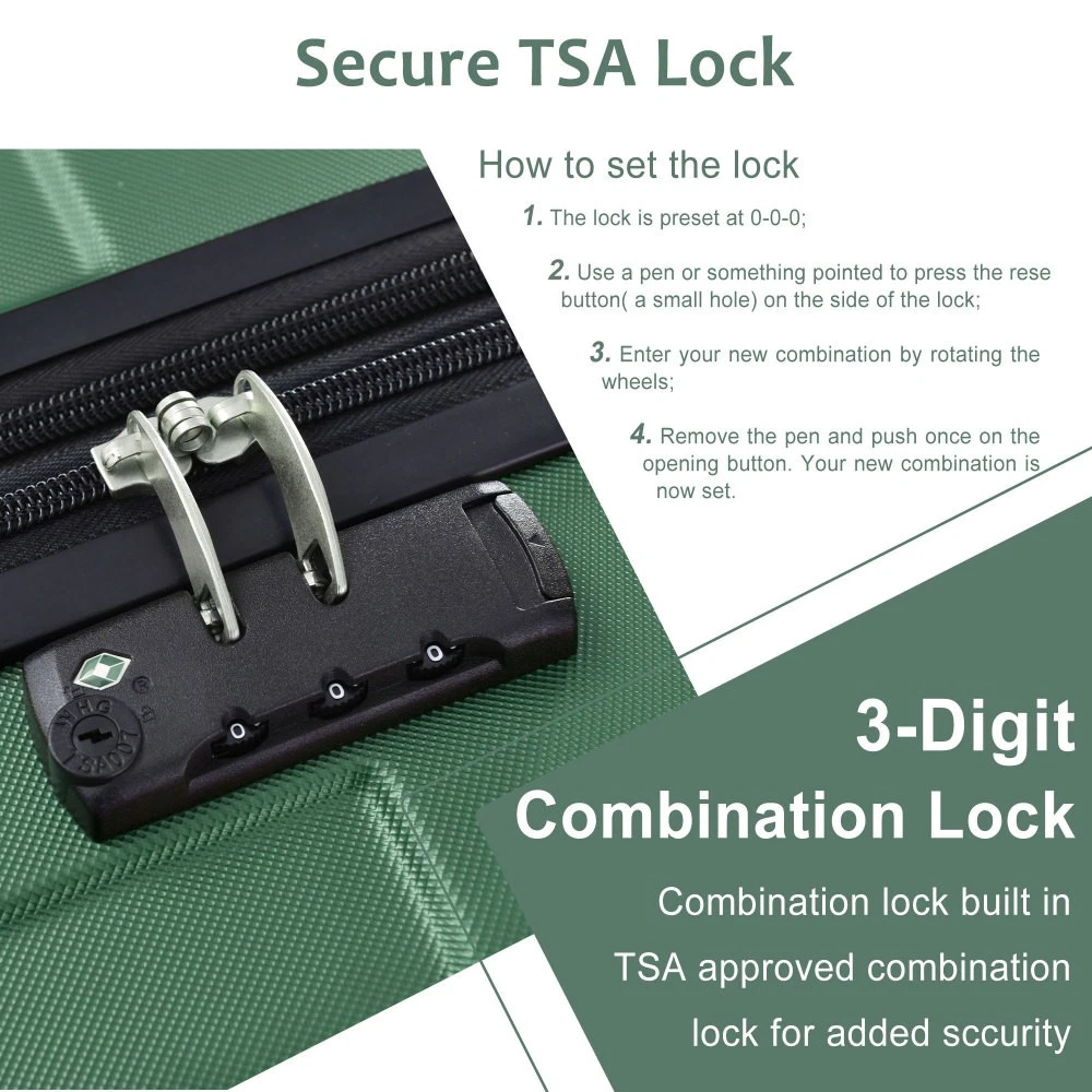 2-Piece Luggage Set: Includes a 20inch carry-on and a 28inch checked suitcase, ideal for both short trips and long journeys to meet all your travel needs. Equipped with a 3-level telescopic handle that adjusts to different heights for comfortable use throughout your journey. Hardshell ABS Luggage: The material has excellent wear resistance and impact resistance, and is lightweight. Durable luggage can withstand transportation and keep your belongings safe. Lightweight luggage makes traveling effortless and enjoyable. 25% Expandable: Available on the 24-inch and 28-inch suitcases, providing additional capacity when needed. These checked sizes also feature TPE-reinforced top and side handles for easier lifting and carrying. TSA Approved Lock: Each travel luggage comes with 3-dial TSA approved combination lock to better protects your property and facilitate customs clearance. Double Universal Wheels: Upgraded spinner wheels are quiet and easy to move, making it easy to navigate through airport halls and streets. HOW TO RESET THE TSA COMBINATION LOCK 1. The lock is set to 0-0-0 at the factory. 2. Make sure the dials are rotated at 0-0-0 or any other code you've set before resetting it. 3. Use a pen or something pointed to press the reset hole adjacent to the dials. 4. Enter your new code by rotating the dials 5. Push the key button once and your code is now set. 6. Scramble the dials and test your new code to be sure the correct one is set.