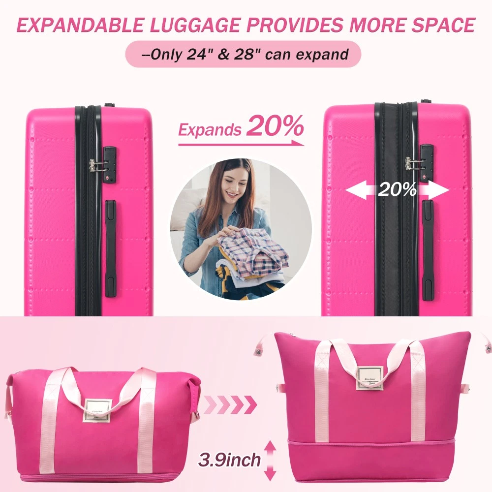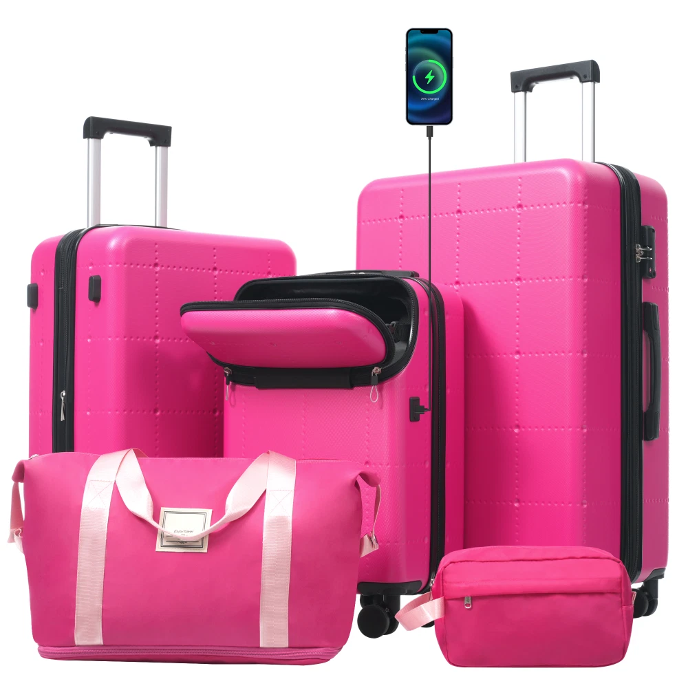 ABS+PC Luggage Set 5 Piece Expandable Suitcase 20/24/28 Inch with Spinner Wheels