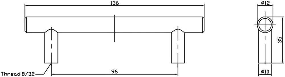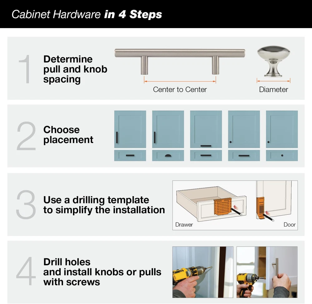 Contemporary cabinet and drawer handle for kitchens and bathrooms | Finish: Brushed Oil-Rubbed Bronze, made of Steel RoHS Certified: Certified lead-free, mercury-free, cadmium-free, and hexavalent chromium-free Center to Center measurement (distance between the drill holes): 3 3/4 in (96 mm) Length (from left to right): 5 3/8 in (136 mm) | Width (top-to-bottom): 1/2 in (12 mm) | Projection (front to back): 1 3/8 in (35 mm) Sold per unit, mounting hardware is included for an easy installation (8/32 screws) This streamlined solid steel pull will add simple elegance to your decor. This certified product will give existing furniture and cabinets an instant upgrade. Please note that the screws included with the products are a standard size of 1 in (25 mm) length, quadrex, pan head. They will fit with most of the popular melamine thicknesses, which range between 5/8 in to 3/4 in (16 mm to 19 mm).