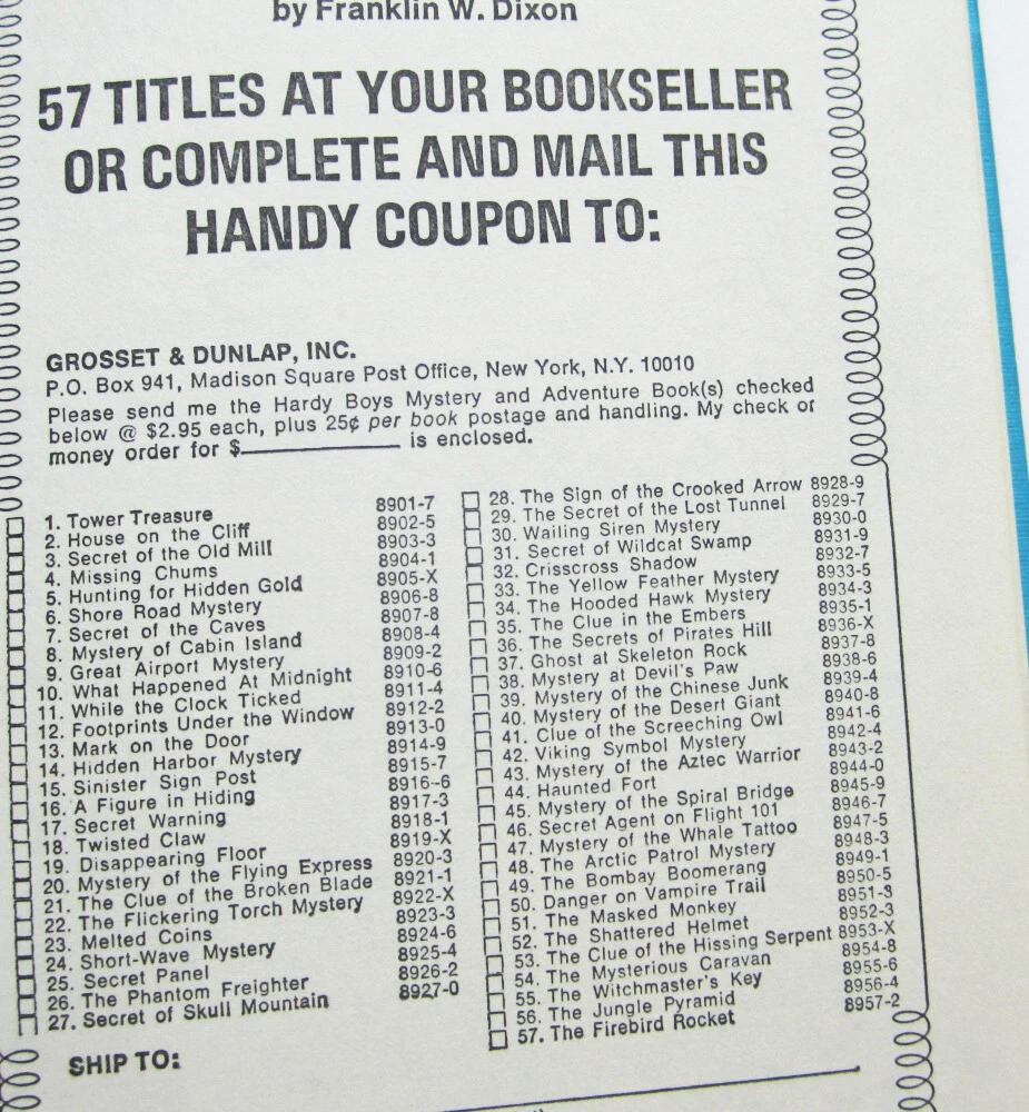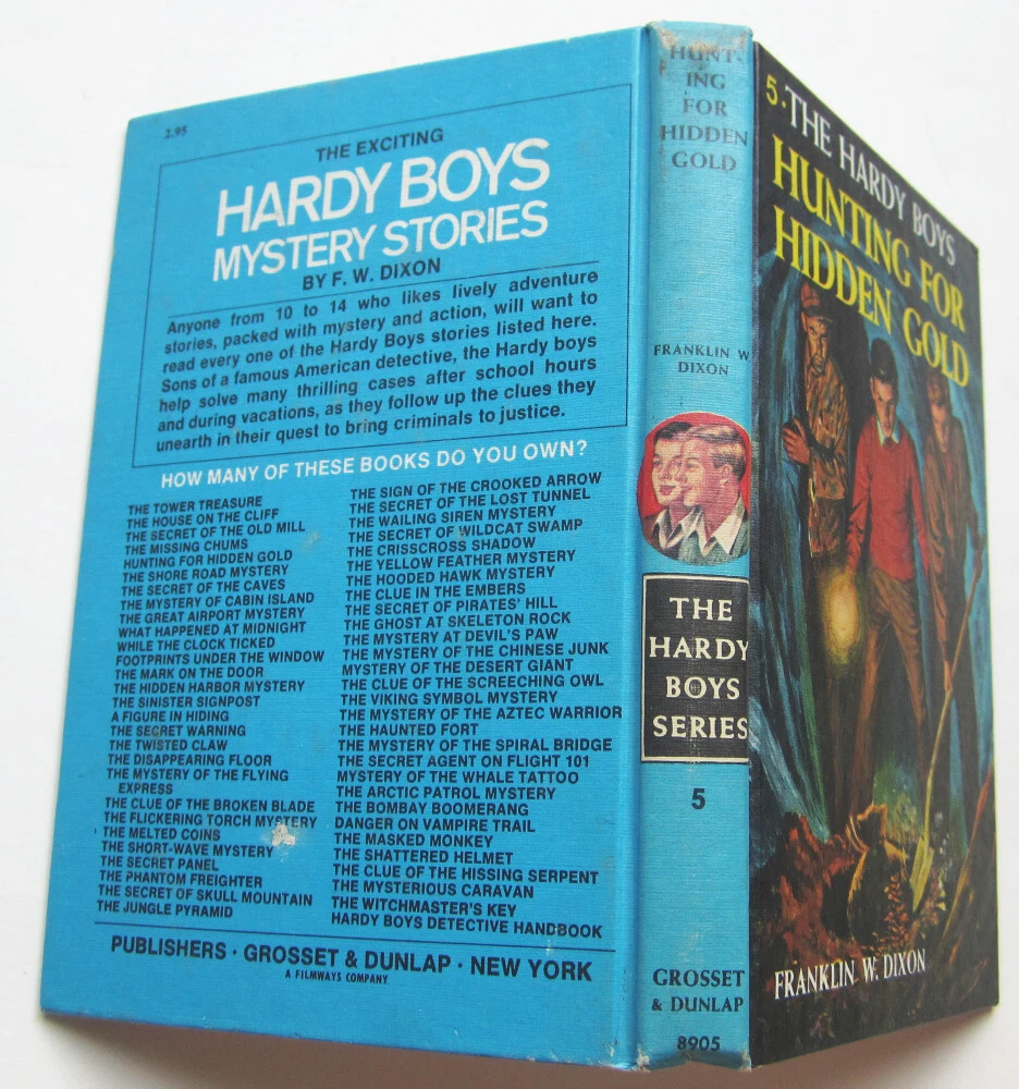 Estimated 1978 edition of the Hardy Boys mystery "Hunting For Hidden Gold," #5 in the series, in great condition overall. Hardcover, from Grosset & Dunlap. CONDITION: Excellent copy, has one very small area of price sticker damage on back (see pic), otherwise great, clean, no writing, barely used if at all, minor corner wear. Endpapers are the 60s/70s black and white multiple pictures. NOTE, we do not have the Carpentieri reference, so if you have questions about specific details, aside from asking for extra pictures, please ask us. Ships FAST in a sturdy unmarked thick-padded envelope - no worries! BUY MORE AND SAVE! If you are buying multiple items, we offer combined shipping for actual ship cost! Simply "Agree to Buy" the items, then choose "Request Invoice from Seller." RETURNS: Accepted if item is still in its originally mailed condition. We do not accept returns on items that have been altered by the buyer. Feel free to ask questions if you have them - we offer discounts on multiple purchases! CLICK OR TAP HERE TO SEE ALL THE HARDY BOYS BOOKS IN OUR EBAY STORE! LOTS of vintage versions! CLICK OR TAP HERE to visit our eBay Store and save on shipping with ONE INTERNET STOP! With over 1500 different items to choose from, we have something for every kid on your list (even the big ones)! Buy with confidence from us -- we have over 20 years experience selling on eBay and other venues!