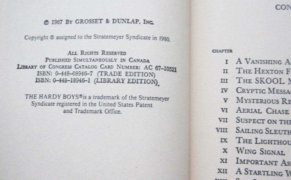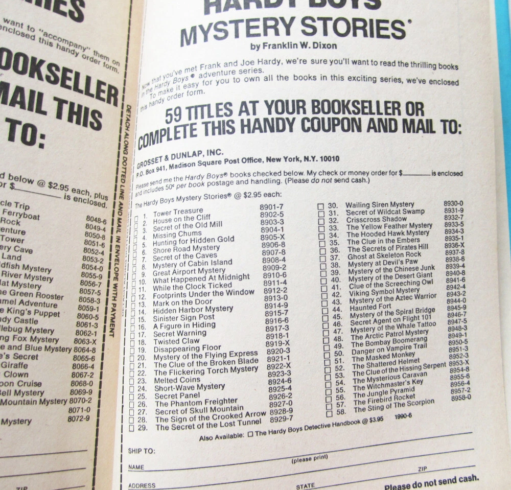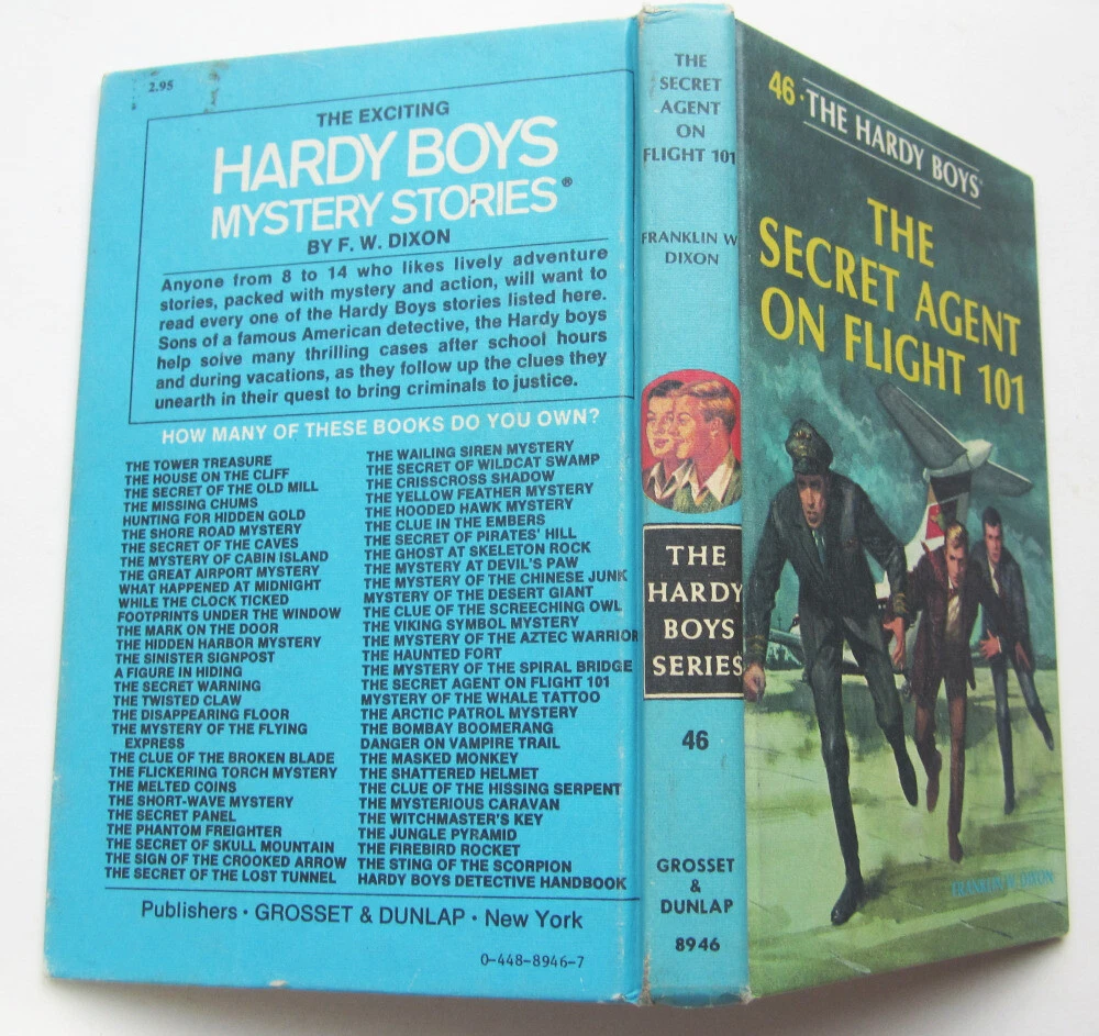 Early to mid-1980s printing of the Hardy Boys hardcover book "The Secret Agent On Flight 101," #46 in the series, in great condition overall. Lists of books on back and interior end at Sting Of The Scorpion. 20 chapters, white oval/cameo endpapers. We do not have the Carpentieri reference, so if you have specific questions, please ask us. CONDITION: Great overall, barely used if at all, clean, no writing. Endpapers are the 60s/70s black and white multiple pictures. Hardcover, from Grosset & Dunlap BUY MORE AND SAVE! If you are buying multiple items, we offer combined shipping for actual ship cost! Simply "Agree to Buy" the items, then choose "Request Invoice from Seller." RETURNS: Accepted if item is still in its originally mailed condition. We do not accept returns on items that have been altered by the buyer. Feel free to ask questions if you have them - we offer discounts on multiple purchases! CLICK OR TAP HERE TO SEE ALL THE HARDY BOYS BOOKS IN OUR EBAY STORE! LOTS of vintage versions! CLICK OR TAP HERE to visit our eBay Store and save on shipping with ONE INTERNET STOP! With over 1500 different items to choose from, we have something for every kid on your list (even the big ones)! Buy with confidence from us -- we have over 20 years experience selling on eBay and other venues!