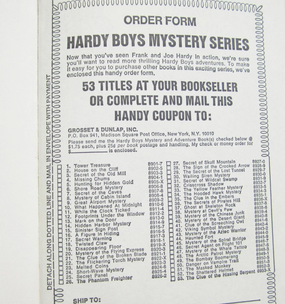 Circa 1975 printing of the Hardy Boys mystery "Secret Of The Lost Tunnel," #29 in the series. Hardcover, from Grosset & Dunlap. 20 chapter version. White multi endpapers. List of books on back ends at Mysterious Caravan (1975), interior to Hissing Serpent (1974). Note that we do not have the Carpentieri reference, so if you have specific questions (aside from asking for more pictures), please ask us. Excellent overall, no writing or tears, minor wear, great example of the book. BUY MORE AND SAVE! If you are buying multiple items, we offer combined shipping for actual ship cost! Simply "Agree to Buy" the items, then choose "Request Invoice from Seller." RETURNS: Accepted if item is still in its originally mailed condition. We do not accept returns on items that have been altered by the buyer. Feel free to ask questions if you have them - we offer discounts on multiple purchases! CLICK OR TAP HERE TO SEE ALL THE HARDY BOYS BOOKS IN OUR EBAY STORE! LOTS of vintage versions! CLICK OR TAP HERE to visit our eBay Store and save on shipping with ONE INTERNET STOP! With over 1500 different items to choose from, we have something for every kid on your list (even the big ones)! Buy with confidence from us -- we have over 20 years experience selling on eBay and other venues!