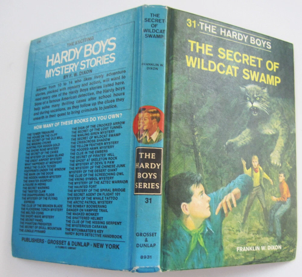 Circa 1977 printing of the Hardy Boys mystery book "The Secret Of Wildcat Swamp," #31 in the series. Book has the dark blue ink staining at top page edges. 20 chapters. List of books on back ends at "Wishmaster's Key" (1976), interior lists to Jungle Pyramid (1977). Endpapers are the black and white multi scene type. Hardcover, from Grosset & Dunlap Excellent copy, no writing, clean. No rips or tears, solid, sturdy. NOTE, we do not have the Carpentieri reference, so if you have questions about specific details, aside from asking for extra pictures, please ask us. Ships FAST in a sturdy unmarked thick-padded envelope - no worries! BUY MORE AND SAVE! If you are buying multiple items, we offer combined shipping for actual ship cost! Simply "Agree to Buy" the items, then choose "Request Invoice from Seller." RETURNS: Accepted if item is still in its originally mailed condition. We do not accept returns on items that have been altered by the buyer. Feel free to ask questions if you have them - we offer discounts on multiple purchases! CLICK OR TAP HERE TO SEE ALL THE HARDY BOYS BOOKS IN OUR EBAY STORE! LOTS of vintage versions! CLICK OR TAP HERE to visit our eBay Store and save on shipping with ONE INTERNET STOP! With over 1500 different items to choose from, we have something for every kid on your list (even the big ones)! Buy with confidence from us -- we have over 20 years experience selling on eBay and other venues!