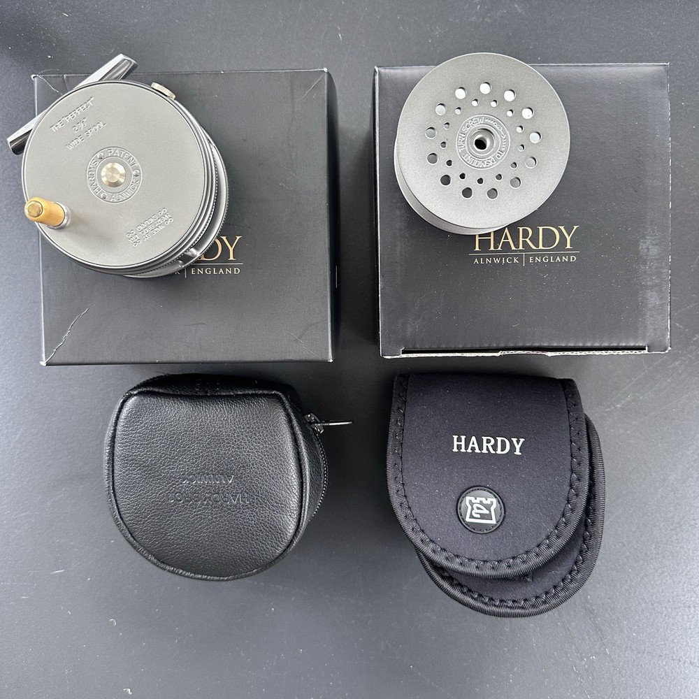 New in boxes Perfect 2.7/8” reel & extra spool. These are no longer available from Hardy. Best for 4 & 5 weight lines.