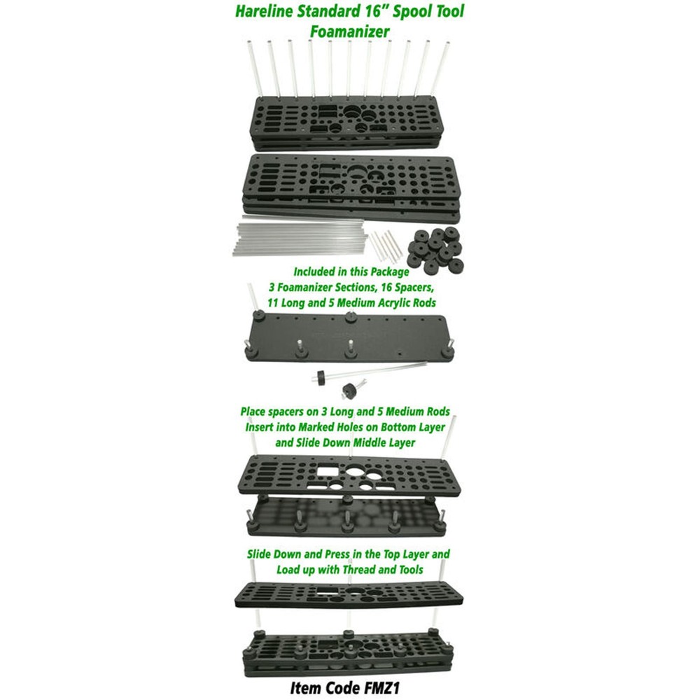 Our eBay Store Add to Favorite Sellers The Hareline Foamanizer Spool / Tool Module Standard 16" is a versatile and durable storage solution for fishing enthusiasts. This foam insert is designed to keep your fishing gear organized and in optimal condition, with enough space to hold spools, tools, and other accessories.