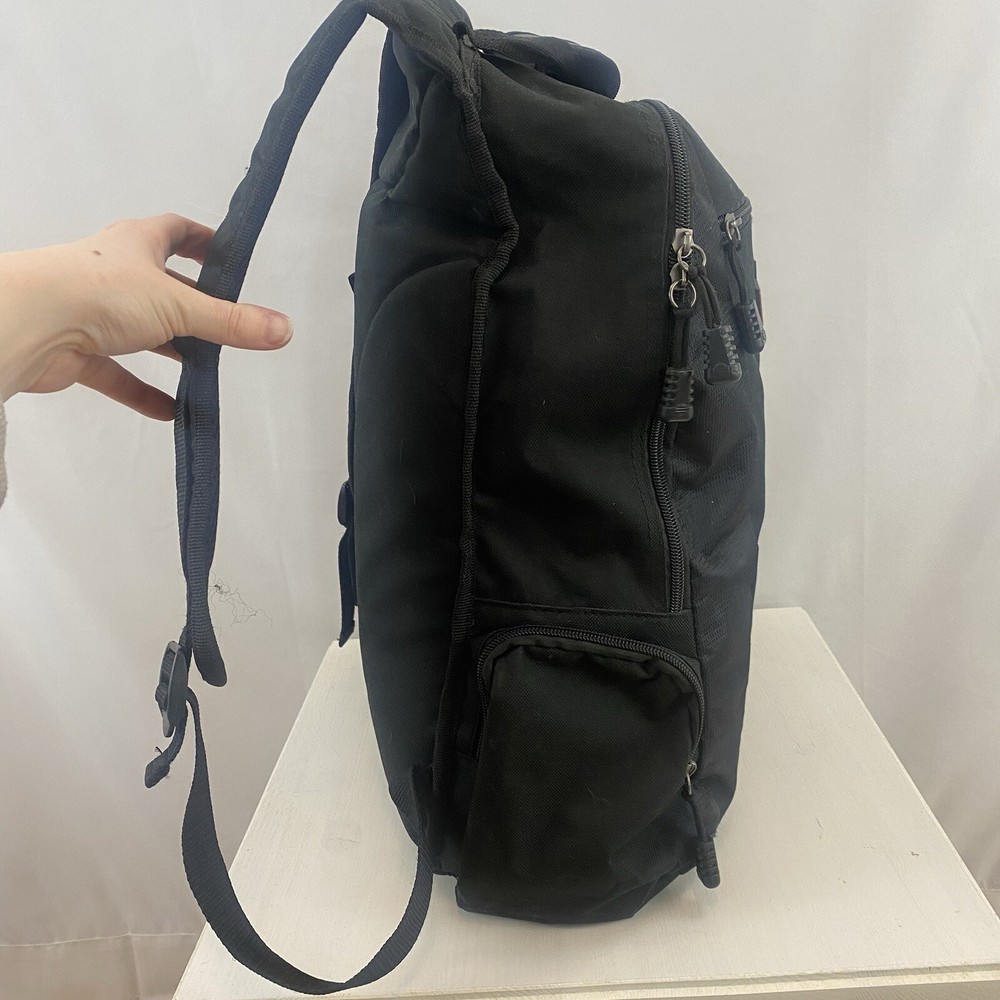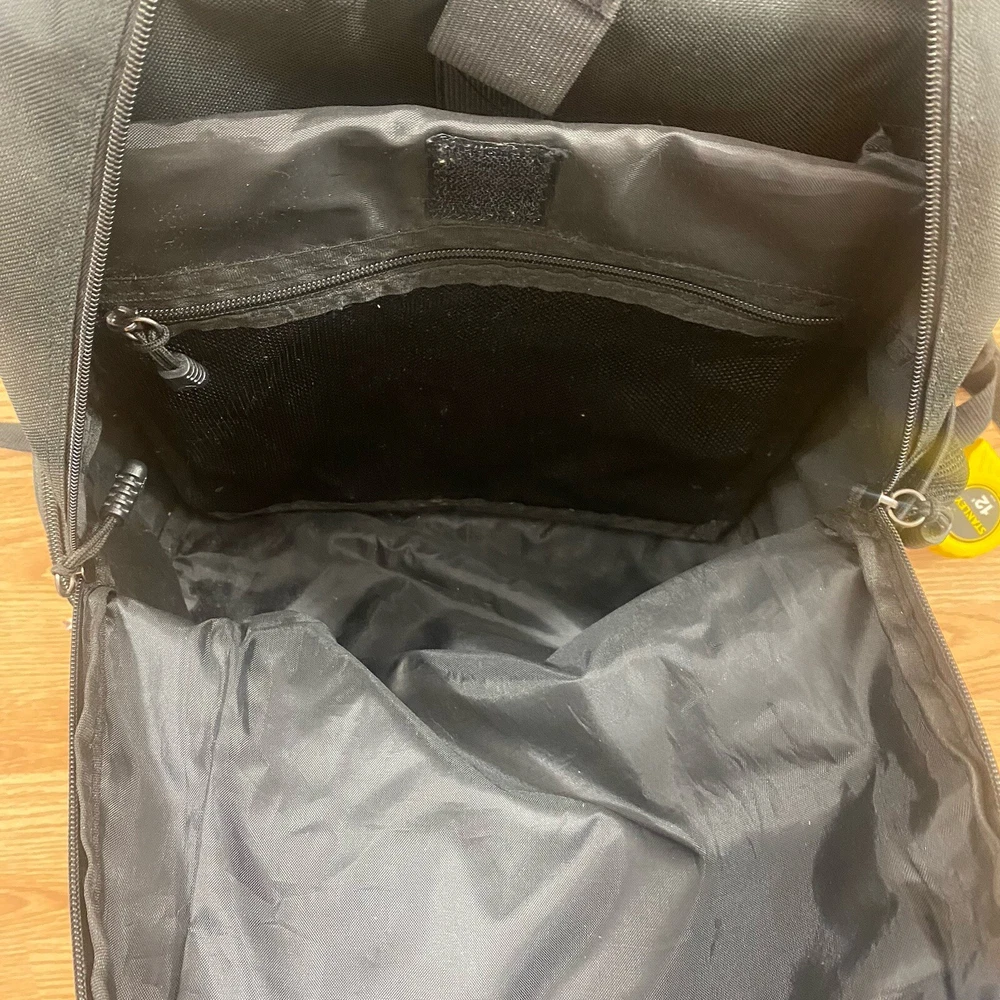 This Harley-Davidson Motorcycles Backpack in black ideal for travel, casual or business use. The large size backpack is made of canvas with a zip closure, shoulder straps, and laptop sleeve. It includes multiple outer pockets, bottle pocket, and adjustable straps, making it lightweight and packable. Perfect for motorcycle enthusiasts or bikers. Used approximately 3x.