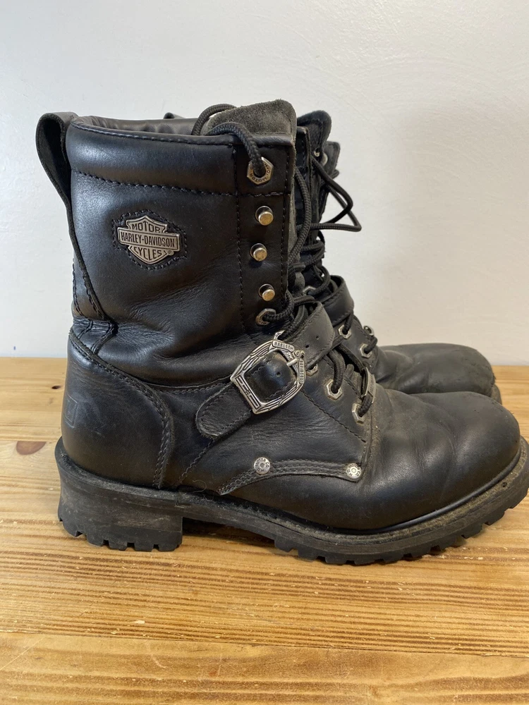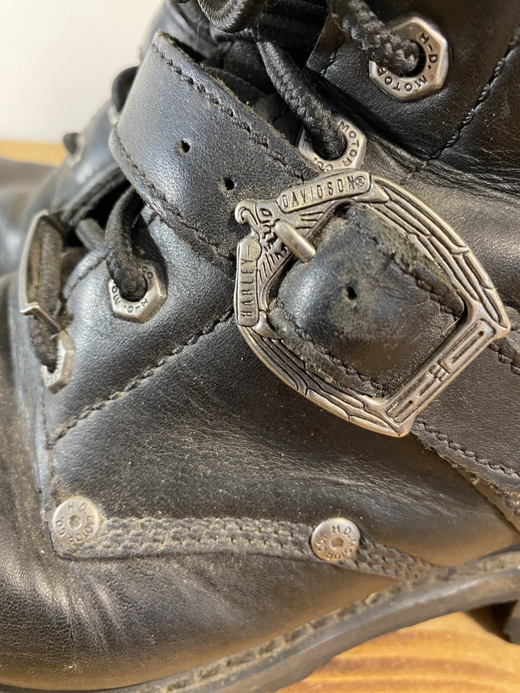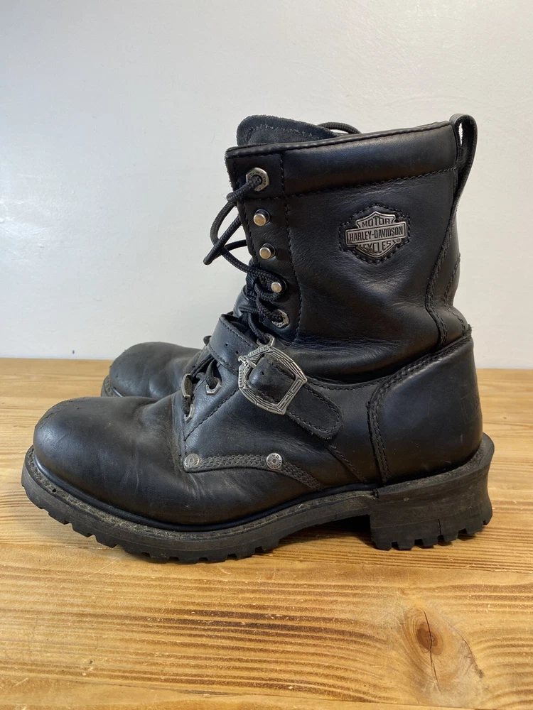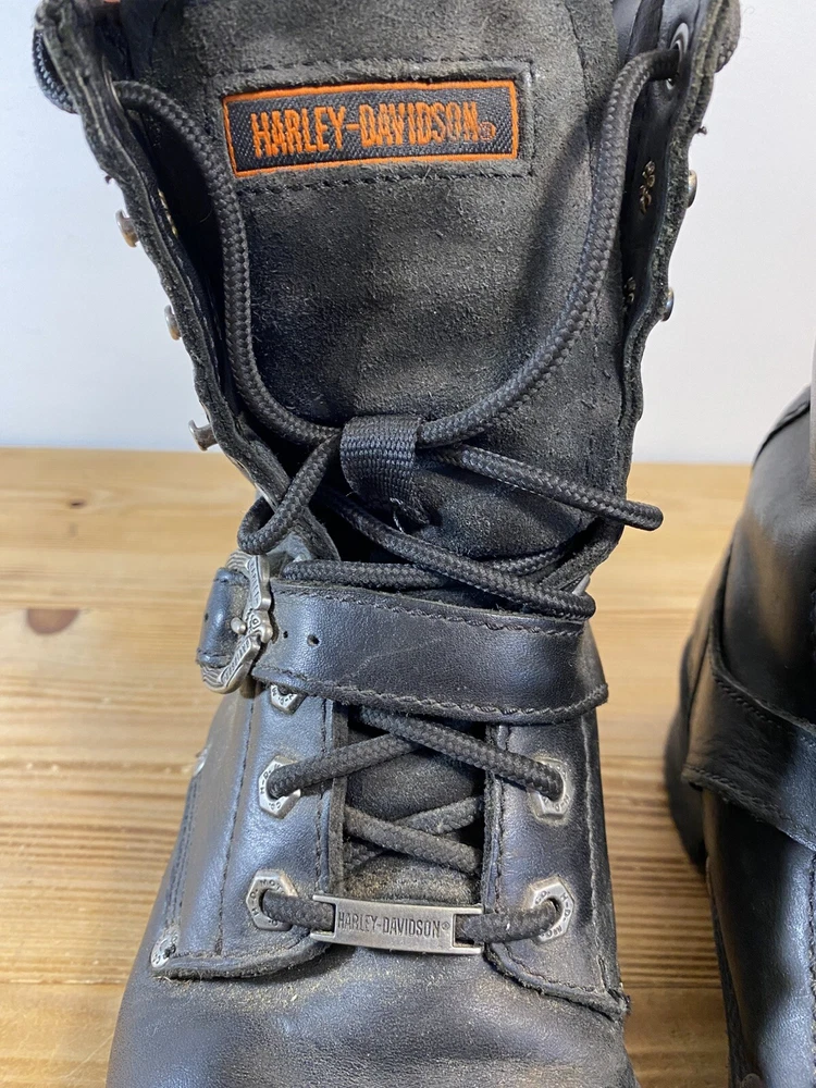 For all the Harley-Davidson enthusiasts out there, these Fury Trunk boots are a must-have. Made with high-quality leather, these mid-calf riding boots feature a solid black color with studded accents, a zipper, and the iconic Harley-Davidson logo. The boots have a round toe shape, a low block heel, and a standard shoe width, making them comfortable and stylish. The boots are perfect for travel, workwear, activewear, and casual wear. They have a padded lining, straps, and a rubber outsole for added comfort. These boots are versatile and can be worn in all seasons, including winter, summer, fall, and spring. They are a great addition to any biker's wardrobe and are perfect for long rides. No box