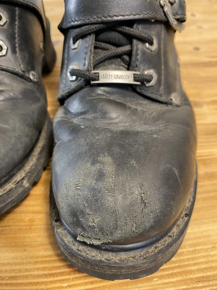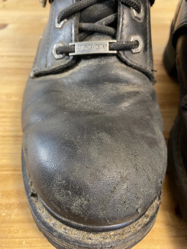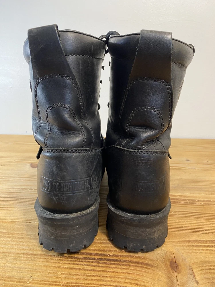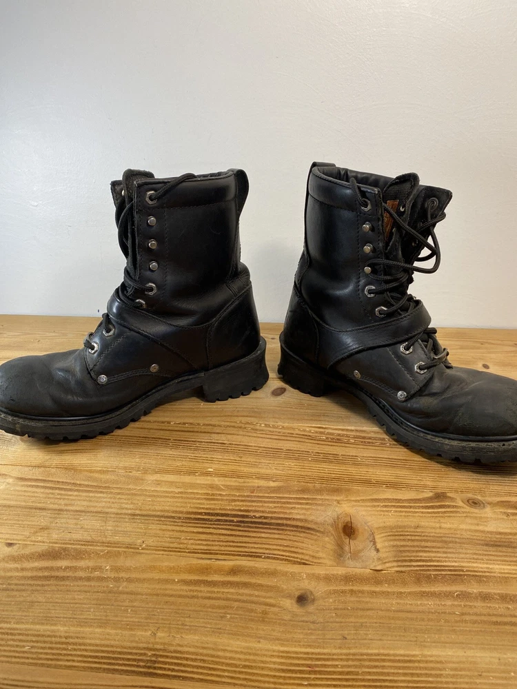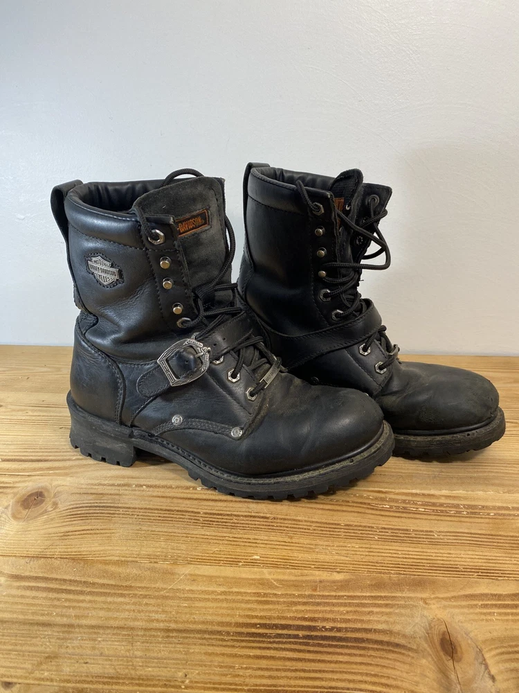 For all the Harley-Davidson enthusiasts out there, these Fury Trunk boots are a must-have. Made with high-quality leather, these mid-calf riding boots feature a solid black color with studded accents, a zipper, and the iconic Harley-Davidson logo. The boots have a round toe shape, a low block heel, and a standard shoe width, making them comfortable and stylish. The boots are perfect for travel, workwear, activewear, and casual wear. They have a padded lining, straps, and a rubber outsole for added comfort. These boots are versatile and can be worn in all seasons, including winter, summer, fall, and spring. They are a great addition to any biker's wardrobe and are perfect for long rides. No box
