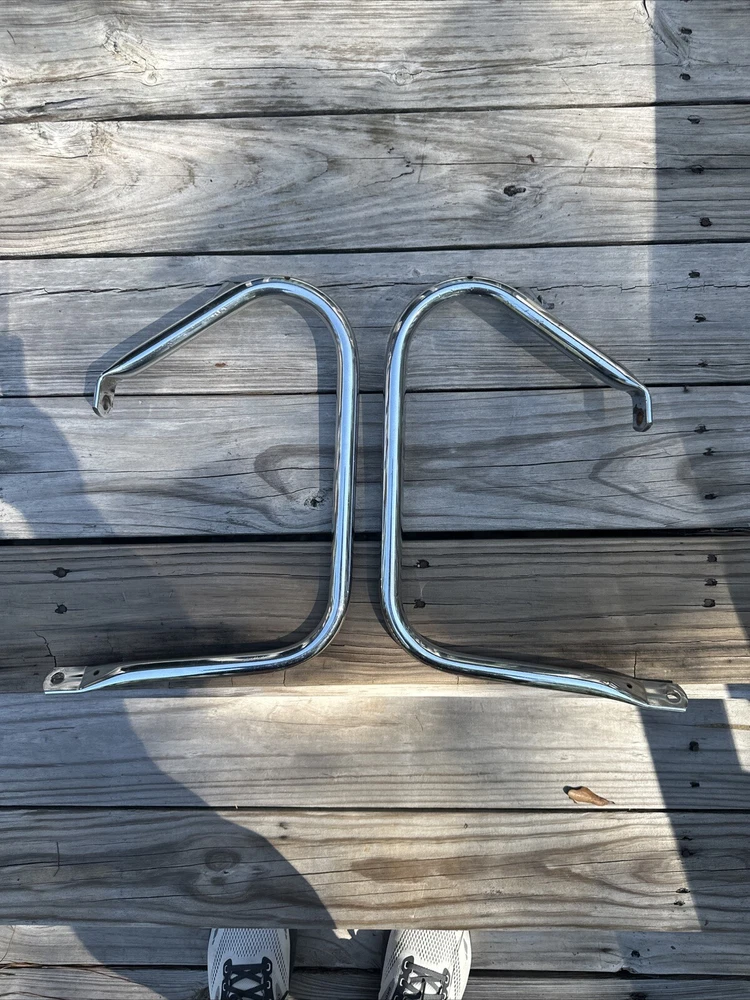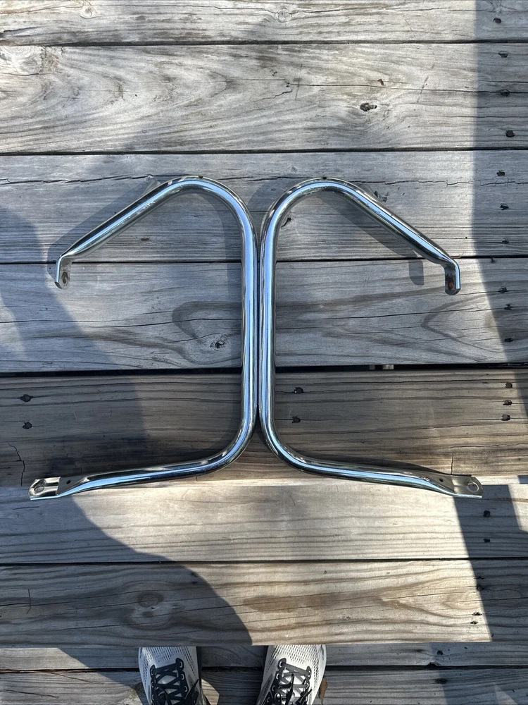 Please see pictures for accurate description. Same day business shipping. Pet loving smoke-free shipping home. If you have any questions please feel free to ask. Thank you so much for your interest. Enhance the look and functionality of your street motorcycle with this Harley Original Side Case Guard Set Saddlebag Guard Kit Touring 93-96. Crafted from durable metal, this vintage Crash Bar comes in a sleek chrome color that complements any bike. The set includes two pieces and features Saddlebag Guards that fit perfectly on the right and left links of your bike. This OE/OEM part number set from Harley-Davidson is a must-have for any motorcycle enthusiast. With a capacity to withstand a crash, this saddlebag is perfect for long touring rides. The kit is designed for easy installation and is compatible with Street Motorcycles. Get your hands on this unique and stylish saddlebag guard set today!