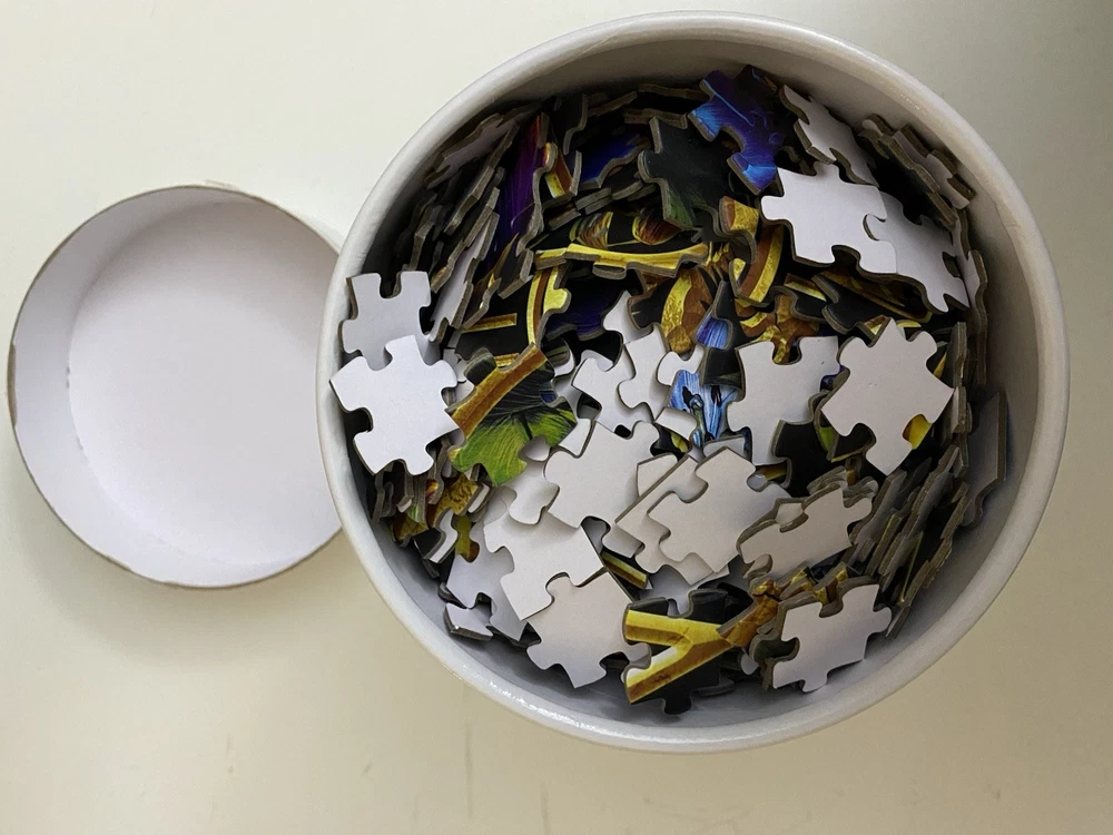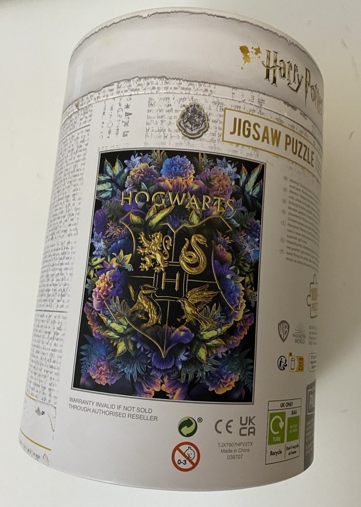 Please note: this puzzle was missing one piece. The missing piece was re-created/fabricated and is included with the puzzle to make a complete puzzle. See pictures of the fabricated piece and the resulting puzzle with the fabricated piece included. Please note this puzzle design is unique, especially with the round cylinder container that makes it a more unique find. The Paladone Harry Potter 1000 Piece Floral Jigsaw Puzzle is a colorful and challenging puzzle featuring a Harry Potter theme. With vibrant multi-color designs and a large 24 x 30 size, this puzzle is perfect for fans of all ages. Made of sturdy cardboard, this puzzle is sure to provide hours of entertainment for puzzle enthusiasts and Harry Potter fans alike. It comes complete with all pieces included, making it a great addition to any puzzle collection.