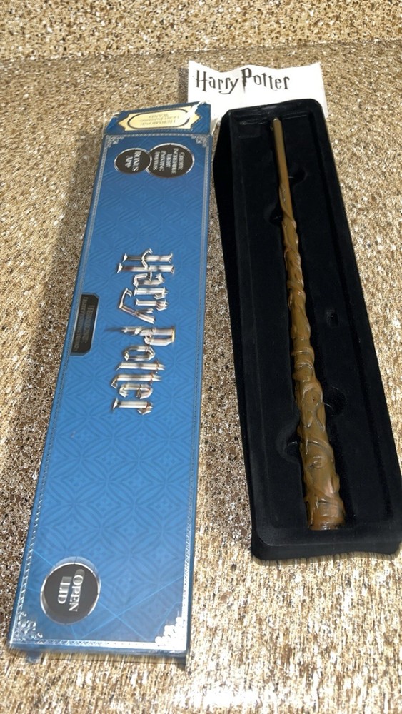 The wand is in great condition. The box has some minor damage. The product is a 14" HERMIONE collectible high grade resin light-up magic wand from the Harry Potter franchise. Produced by WOW & Warner Bros., this wand is a must-have for fans of the fantasy genre. Made in the United States, this officially licensed Harry Potter collectible features intricate details and is a perfect addition to any fan's collection. With its authentic design and functional light-up feature, this wand is sure to delight any Harry Potter enthusiast.