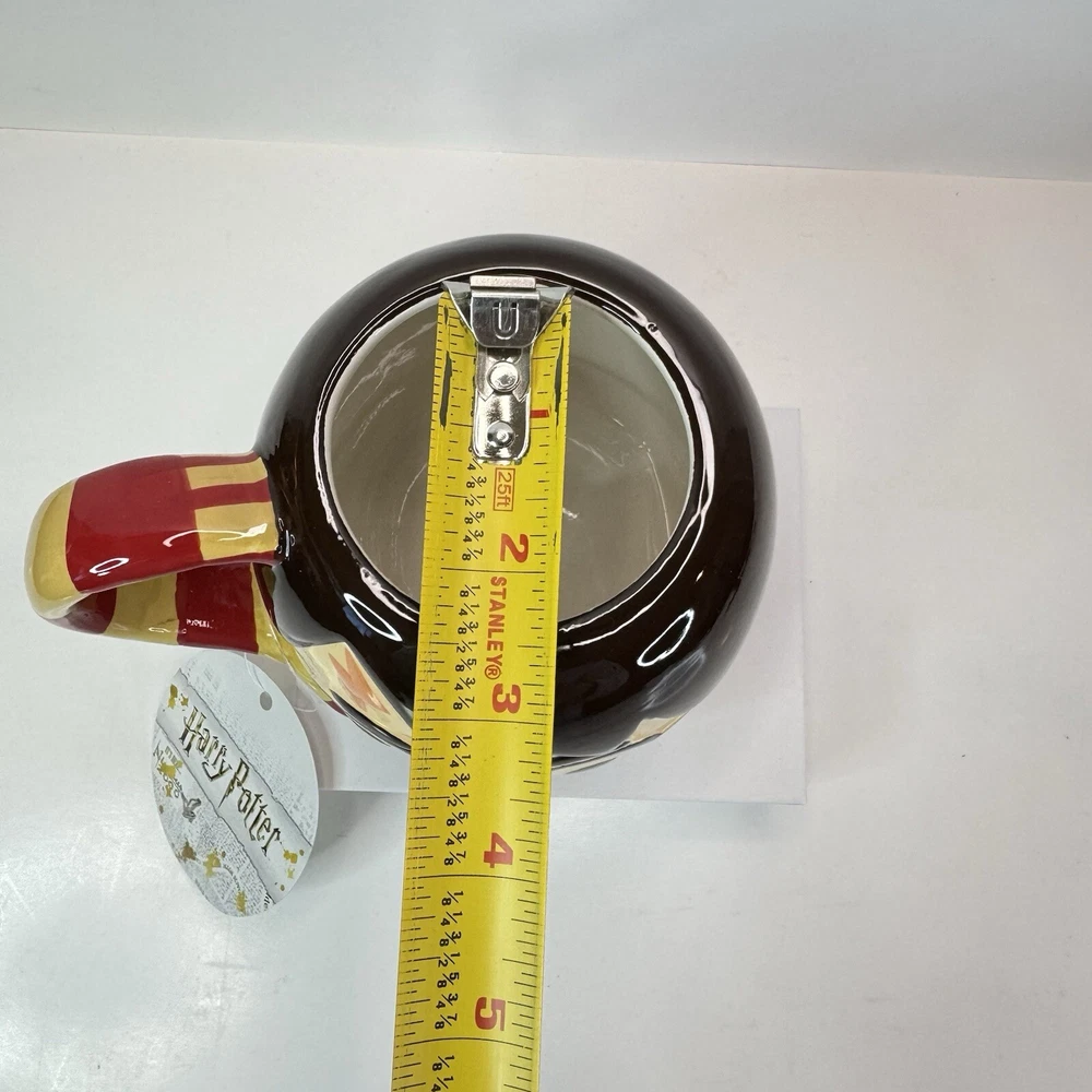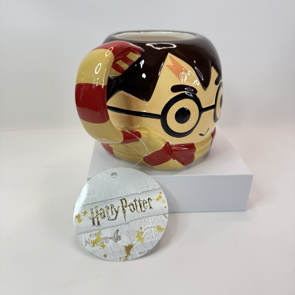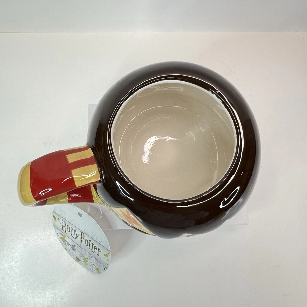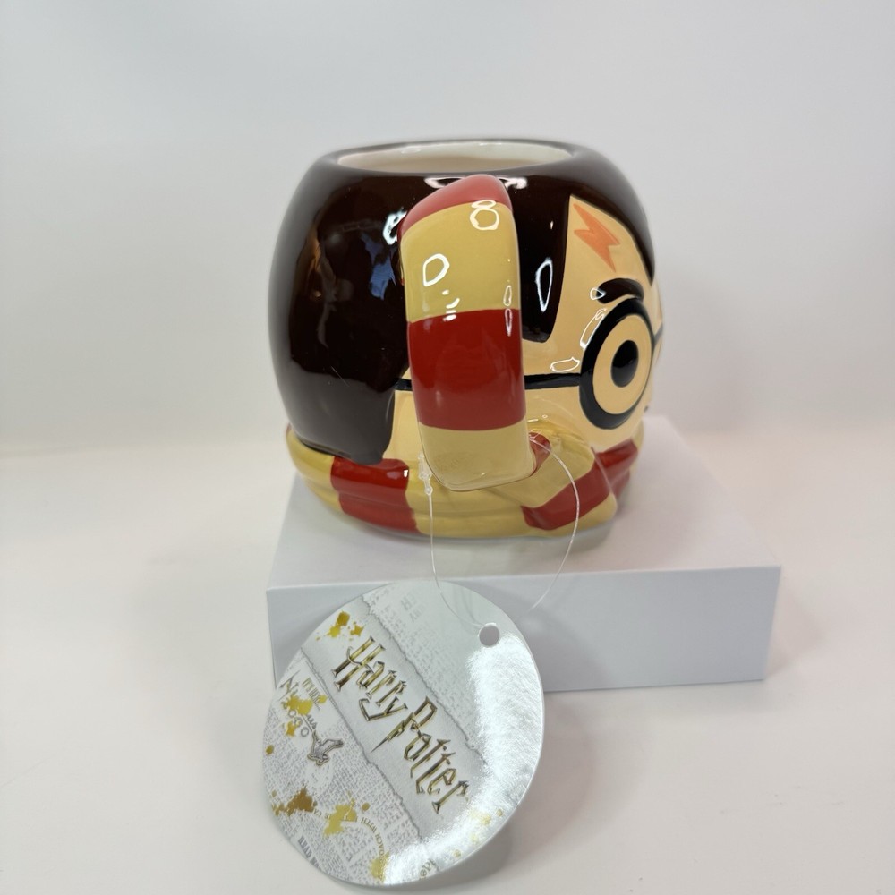 This is a brand new Harry Potter coffee mug featuring a cute chibi design and a Gryffindor scarf. The mug has a large 24 oz capacity and is shaped like a figure. It is colored in beige and is perfect for any Harry Potter fan looking to add a touch of magic to their daily coffee or tea routine. The mug is a charming addition to any kitchen or dining collection, making it a must-have for fans of the popular fantasy series.
