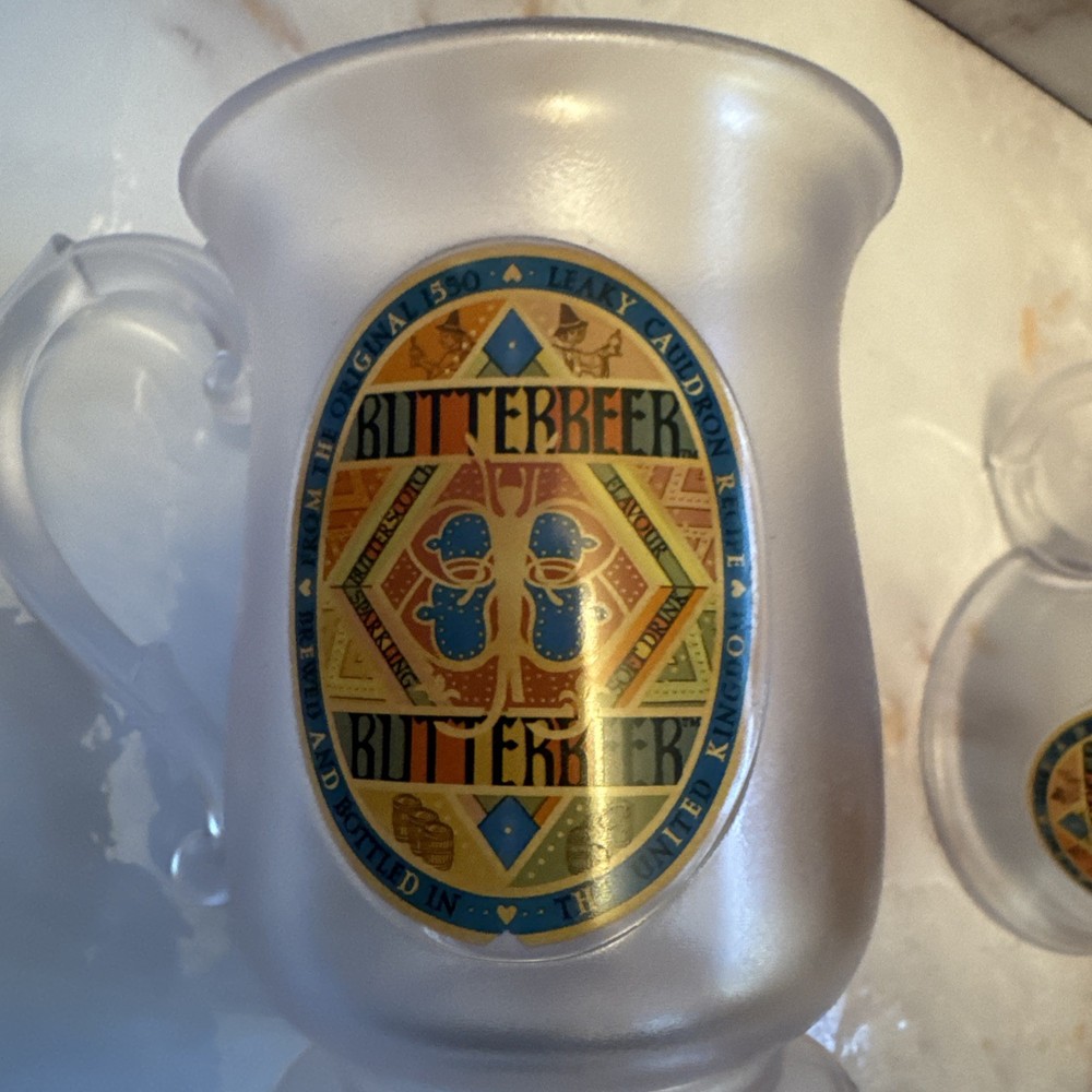 Experience the magic of Hogwarts with these 2 Harry Potter Butterbeer Mugs. Each 4 1/2 inch plastic cup features the iconic golden Butterbeer logo, bringing a touch of the wizarding world to your collection. Perfect for fans of the fantasy genre and the beloved Harry Potter franchise, these mugs are a must-have for any enthusiast. Crafted with care and attention to detail, these cups are an official Warner Bros. licensed product, ensuring authenticity and quality. Whether for display or use, these mugs are a delightful addition to any Harry Potter themed decor or collection. Enjoy your Butterbeer in style, whether you're a first-time visitor or a seasoned wizard of the series.