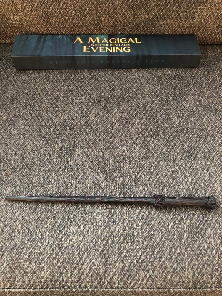 The product is a collectible wand from the Wizarding World of Harry Potter, specifically tied to the Reno Nevada Aces baseball team. This item appeals to fans of the fantasy genre and the Harry Potter franchise, offering a unique memento related to the magical world of Harry Potter. The wand would be a desirable addition to any collection of Harry Potter memorabilia for enthusiasts looking to bring a touch of wizarding charm into their everyday life. Please contact me if you have questions or would like additional photos. USA shipping only.