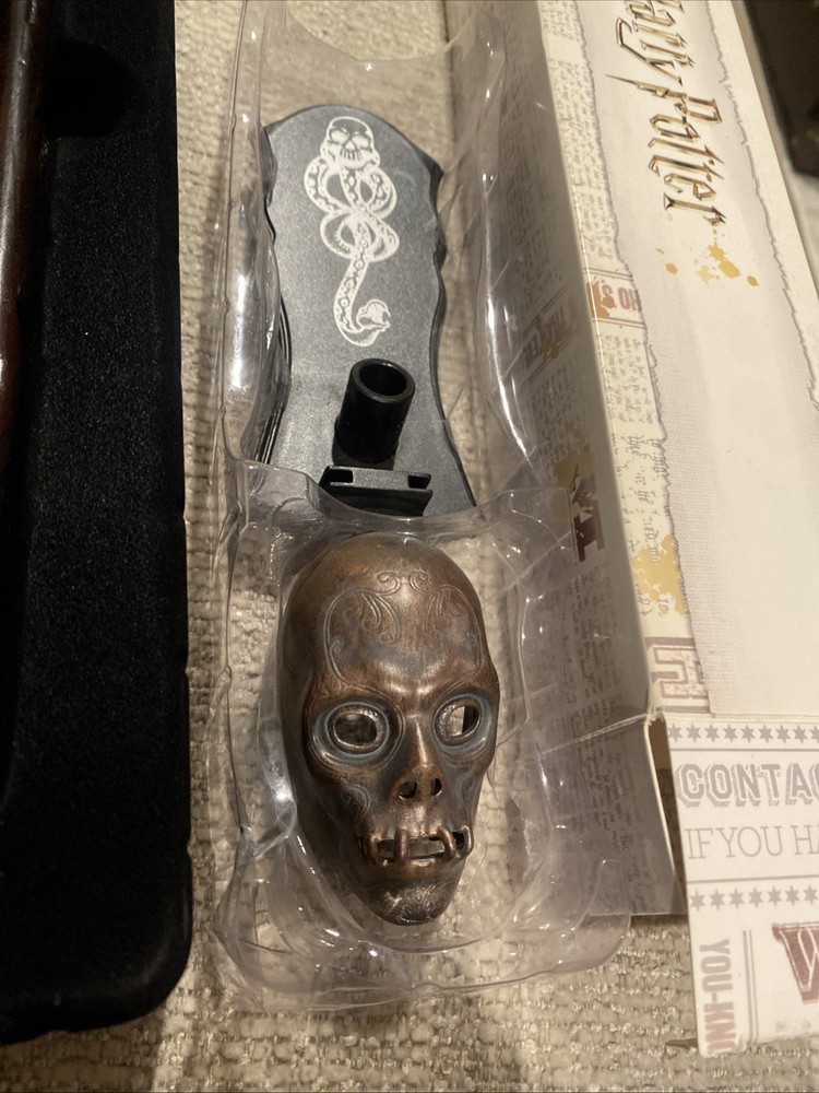 This Harry Potter Mystery Wand is a must-have for any fan of the franchise. This special edition wand, featuring the iconic Death Eaters design, is sure to impress. The intricate swirl pattern adds a unique touch to this collectible item. Crafted by Warner Bros., this wand is a high-quality addition to any Harry Potter collection. Perfect for display or play, this wand is a great gift for any fan of the fantasy genre. Don't miss your chance to own this magical piece of Harry Potter memorabilia.