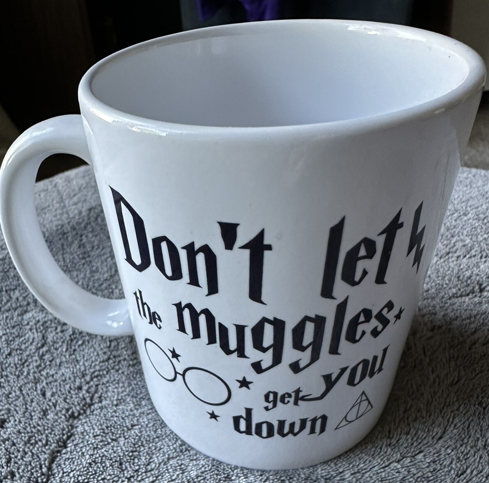 This Harry Potter-themed mug is the perfect addition to any fan's collection. The white finish and round shape make it suitable for both hot and cold beverages. The mug features a funny quote that reads "Don't Let The Muggles Get You Down" and is perfect for anyone who loves the Harry Potter franchise. Made from high-quality materials, this 11 oz mug is built to last. It is perfect for everyday use, whether you're a collector or just looking for a unique addition to your kitchen. Get your hands on this Harry Potter mug today and show off your love for the franchise!
