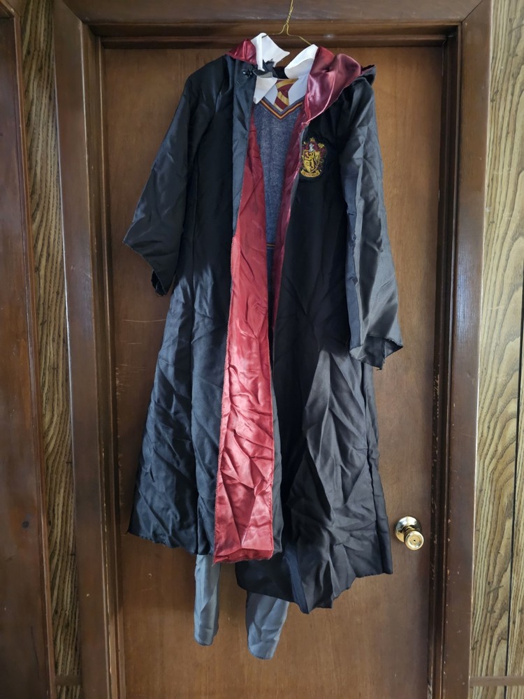 This Harry Potter Ron Weasley Gryffindor Costume in size L (10/12) is a complete outfit perfect for fans of the Gryffindor theme. The multi-color suit and robe feature the iconic design elements from the beloved Harry Potter series, making it a standout choice for any costume or reenactment event. As an officially licensed Harry Potter product, this costume brings a touch of magic and whimsy to any wearer looking to channel their inner Ron Weasley.