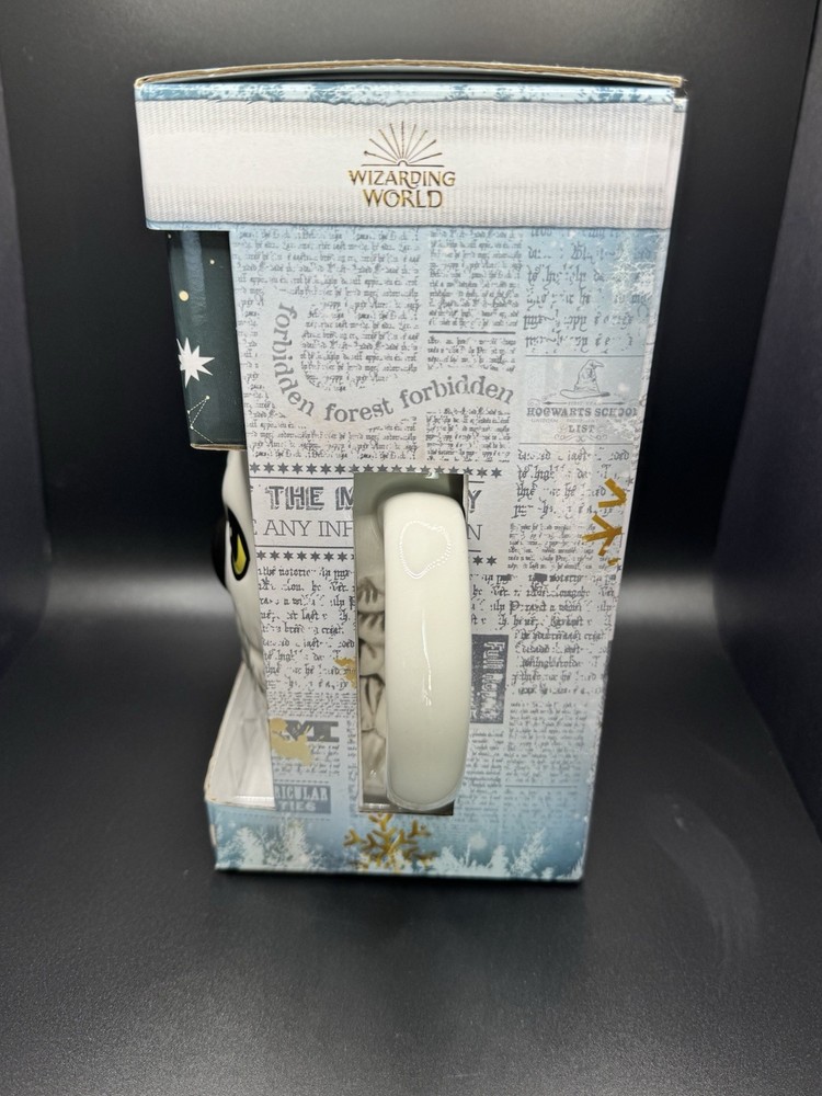 The Harry Potter Owl "Hedwig" Mug with Color Changing Hot Chocolate Mix is a whimsical and magical addition to any wizard's kitchen. This jumbo mug features an oval shape with a white ceramic design accented with animal print patterns and the iconic owl character from the Harry Potter series. Perfect for all occasions, this mug comes with four color changing hot chocolate mixes that add a touch of enchantment to your hot beverage experience. With its 12 fl oz capacity, this mug is both practical and enchanting for any Harry Potter fan.