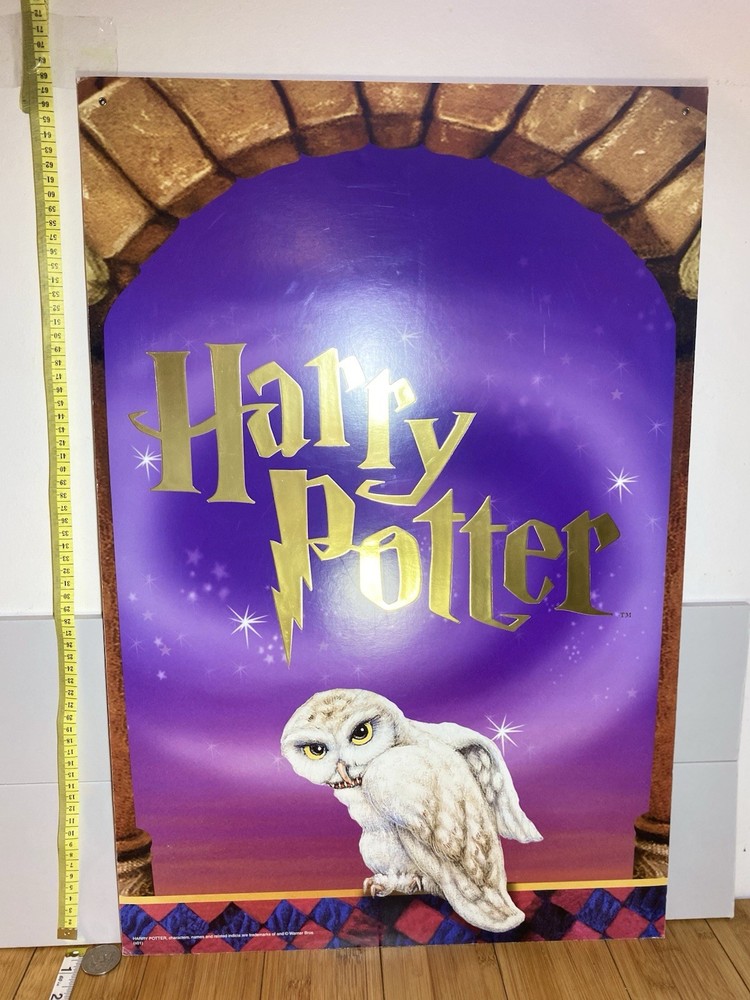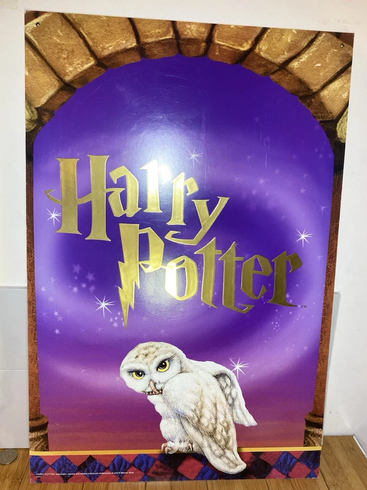 REALLY GOOD CONDITION NEVER USED WAS STORED SINCE GOT IT FROM PROMOTIONAL HARRY POTTER MARCHANDISE STORE PROVIDERS Crafted for the avid Harry Potter enthusiast, this vintage 2-sided retail bookstore display sign features the beloved character Hedwig. Dating back to 2001, it's a charming piece of memorabilia that celebrates the fantasy genre and the iconic franchise. This collectible is perfect for adding a touch of magic to your home library or as a unique gift for the Harry Potter collector in your life. The sign showcases intricate artwork that captures the essence of Hedwig, making it a standout addition to any collection of fantasy, mythical, or magical themed items. Whether it's showcased in your personal study or nestled amongst other Harry Potter treasures, this sign is sure to evoke the wonder and excitement of the wizarding world.