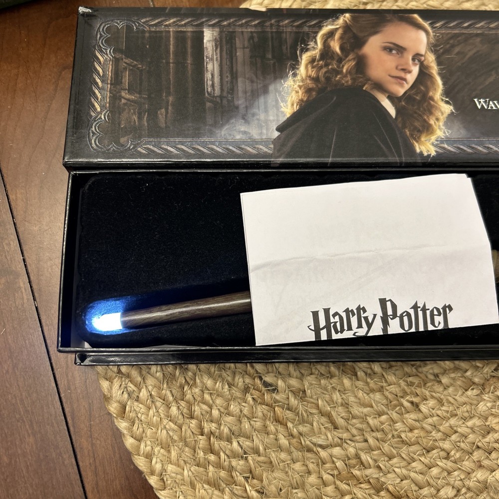 Harry Potter Hermione Granger's Wand Illuminating Tip Noble Collection TESTED Excellent Pre-owned by 1 household item. The product is a Harry Potter Hermione Granger's Wand with an illuminating tip, officially licensed by Warner Bros. This collectible wand belongs to the Harry Potter franchise and is designed for fans of fantasy and magical themes. Made in China, this wand captures the essence of Hermione's iconic accessory, making it a must-have for fans and collectors alike. Perfect for those who appreciate the magical world of Harry Potter, this wand is sure to add a touch of whimsy and enchantment to any collection.