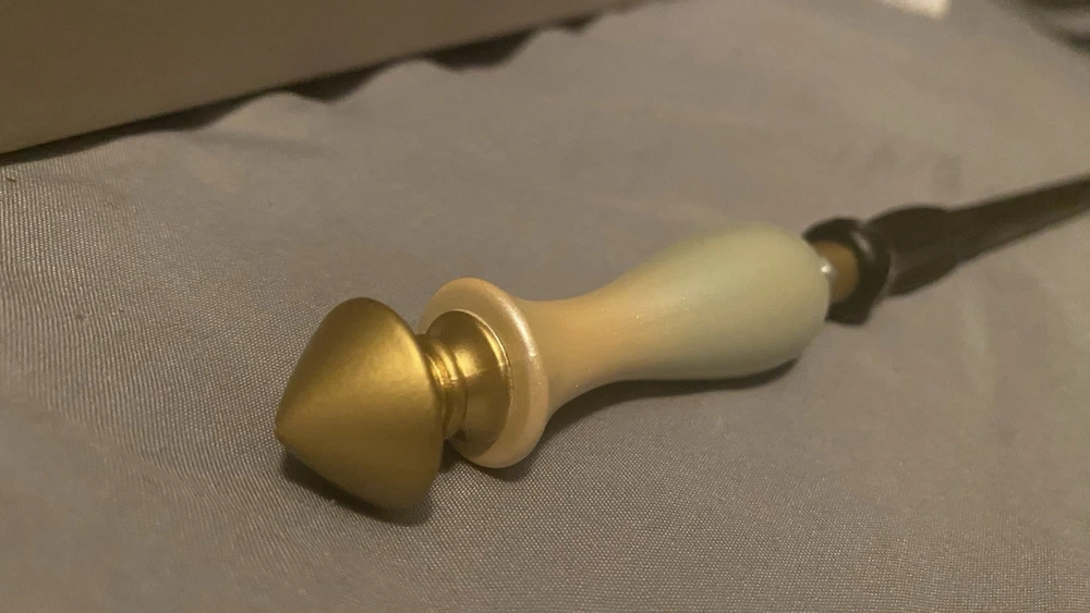This wand is absolutely stunning—the golden tip and pearlescent handle make it feel magical. The detailed engraving adds an elegant touch, and the black base completes the look. It’s a rare collector’s piece, and at this price, it’s an incredible deal. Perfect for any Harry Potter fan who wants something truly special!