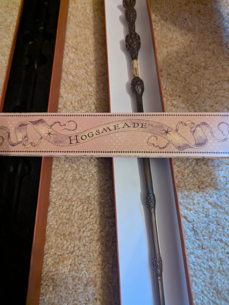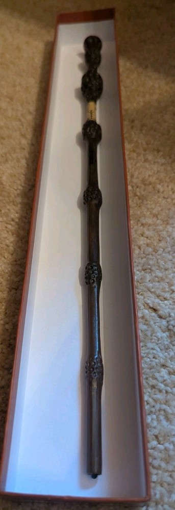 This Harry Potter interactive wand is a must-have for any fan of the franchise. It is a replica of Harry Potter's wand from the popular series and is a great addition to any collection. The wand is designed to respond to certain commands, making it a unique and interactive experience for fans. The wand is perfect for collectors and enthusiasts alike, and is a great addition to any Harry Potter collection. It is a universal studios exclusive, making it a rare and unique item to own. Fans can use the wand to cast spells and interact with the world around them, making it a truly magical experience.