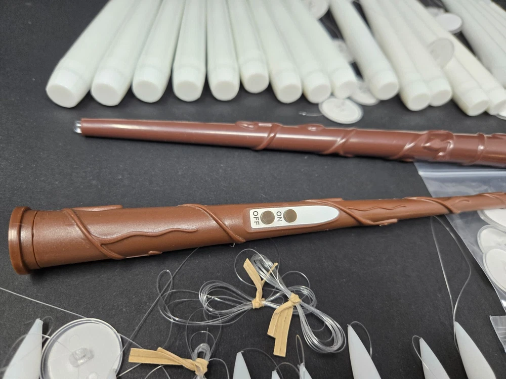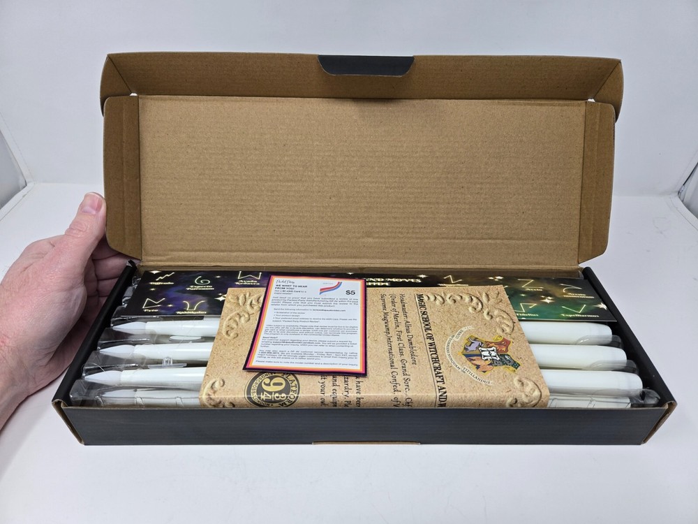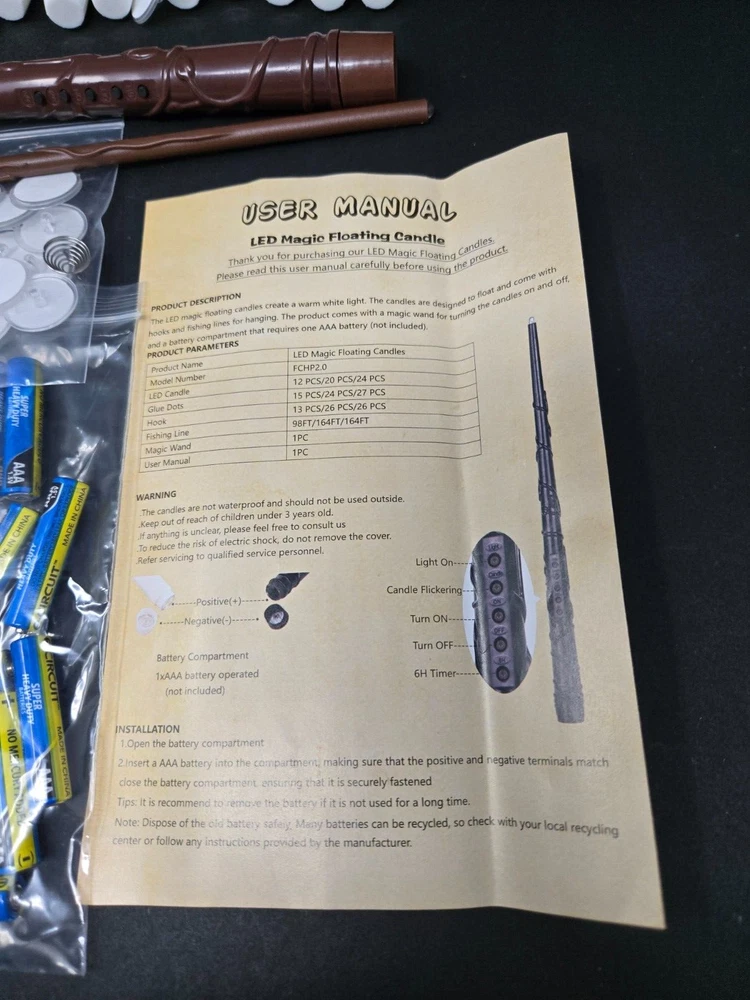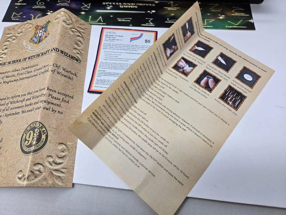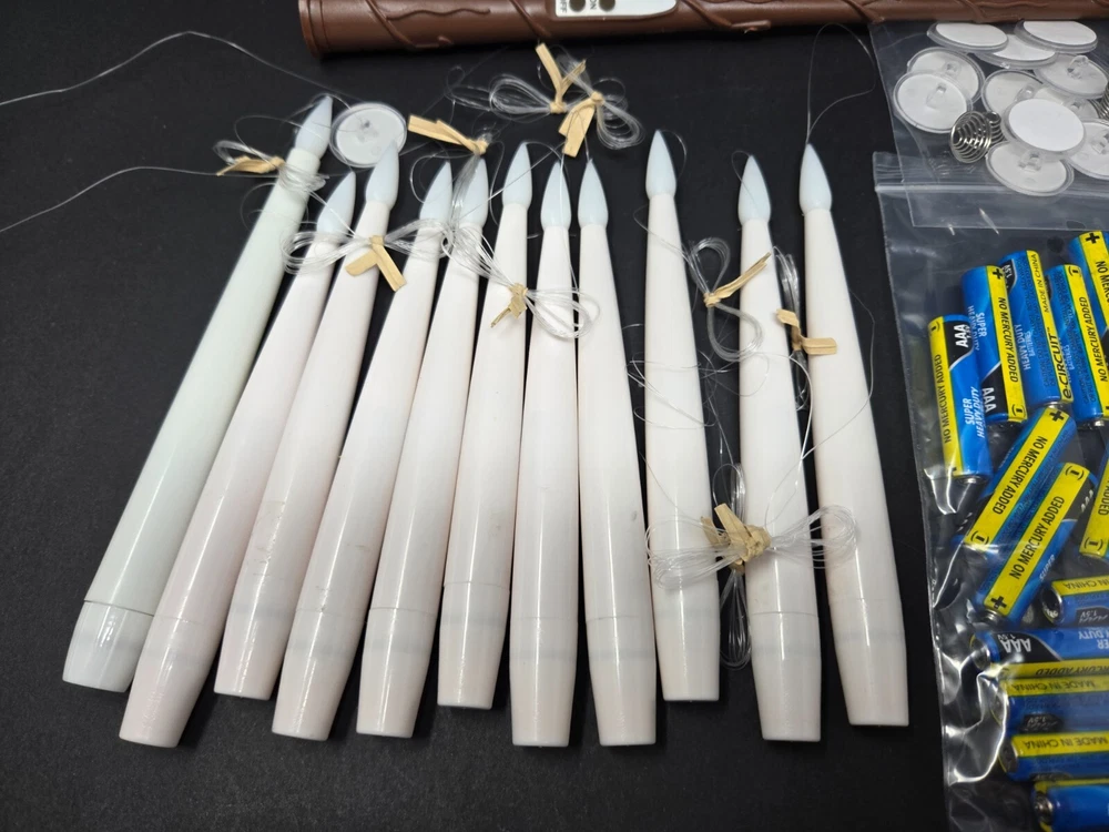 This medium-sized set of 50 white plastic floating candles is designed in a round shape and is powered by AAA batteries. Each candle features LED lights and the lot comes with three remote wands, creating a magical Harry Potter theme. Perfect for adding a touch of art deco style and fantasy to your living room or dining room, these unscented candles have a burning time of more than 5 hours. Ideal for those who enjoy fun, curiosity, and novelty themes, this set is a unique addition to any home decor. NOS (New Old Stock) New/Open Box. Lot includes EVERYTHING you see in ALL of the photos. All of our items are shipped from a SMOKE-FREE environment.