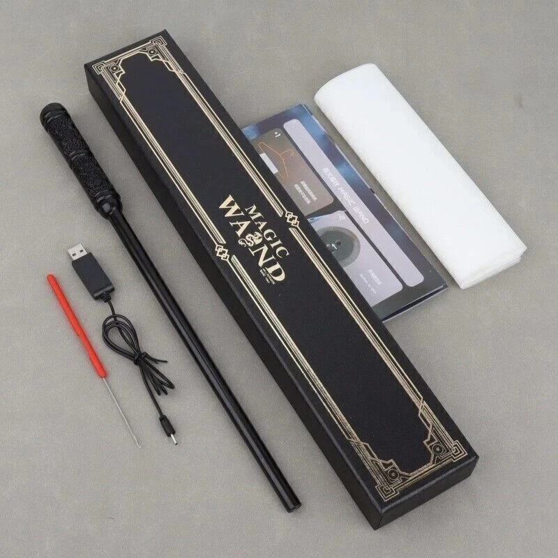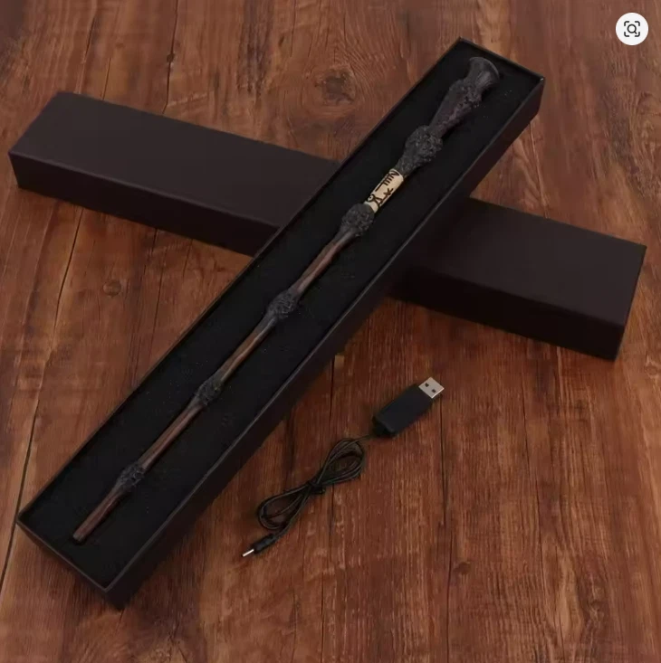 Product features: High stability, exquisite workmanship, silent button switch, charger with indicator light. The green light is fully charged, while the red light is charging. When fully charged, it will automatically power off. A bilingual graphic and textual instruction manual in both Chinese and English. Consumable paper is packaged in self sealing bags, which are easy to open repeatedly and come with warning messages in both Chinese and English. Product Introduction: Exquisite craftsmanship, solid materials, and a hollow steel tube embedded in the main body make the wand sturdy and durable, and also give the wand a heavy feel when taken away, without feeling light and floating like a plastic toy. Props include: 1 wand, smart USB charging cable, auxiliary hook, Zhou language meter, gift box, wand protective bag, transparent protective bag for gift box. Maintenance suggestions: Don't charge the battery only when it's completely out of battery. Charging it once after 20-30 uses is beneficial for battery life. Continuously pressing the switch will cause the battery to overheat instantly, and the battery protection board will automatically protect it. Pressing the filament again will not light up. After a while, when the battery temperature returns to normal, the protection will be automatically released. Pressing the switch again will restore normal operation. The ignition is completed instantly, usually for 1 second each time. Do not press it for a long time or frequently, as it is beneficial for the battery life Warning: Wands are professional magic props and are not children's toys. They are not allowed to be used by minors or released towards people. When checking the heating wire, do not look directly at it and look sideways to prevent excess spark paper from being ignited. Please strictly follow the instructions for use!!! The material of the gift dual-use plug hook is iron, which may oxidize when exposed to air at certain temperatures and humidity, resulting in rust on the surface, but it does not affect its use. Consumables Description: Consumables paper needs to be stored in a damp environment, which may cause mold spots on the surface of the paper. After drying, it can be used normally
