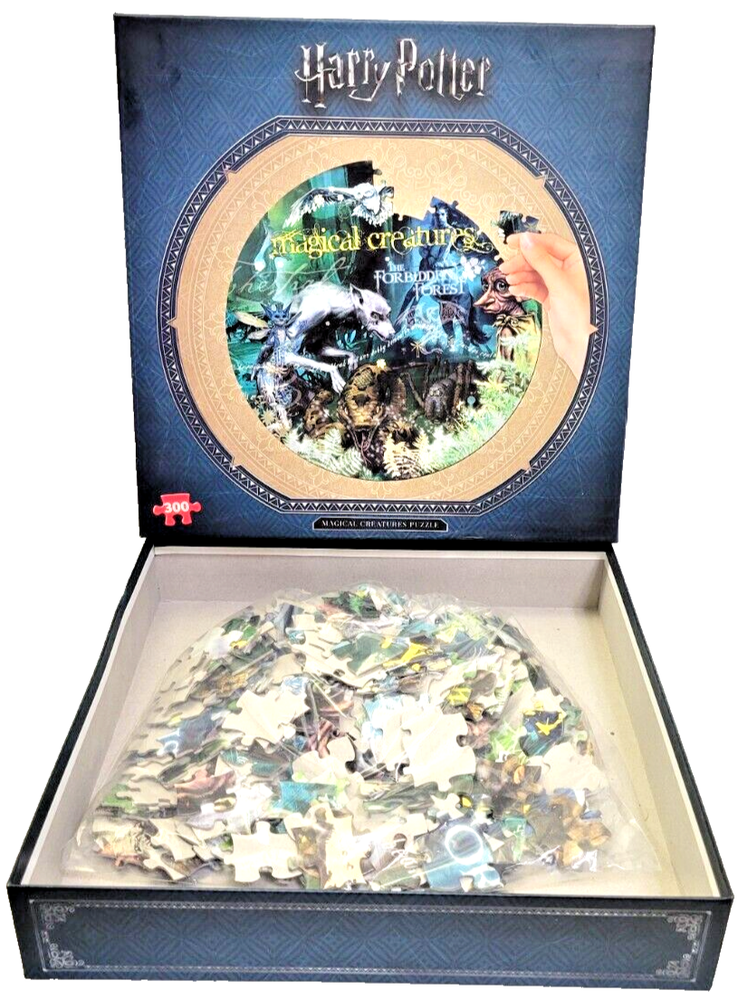Step into the wizarding world with this 300-piece jigsaw puzzle featuring magical creatures in The Forbidden Forest from Harry Potter. The puzzle is complete and in excellent shape. It is made of high-quality cardboard material and has a 20" diameter. The puzzle pieces have been stored in a smoke-free household and the recommended age range is 10+. This puzzle is perfect for fans of the Harry Potter franchise and those who love solving puzzles. The puzzle includes magical creatures from the Harry Potter series and is a great addition to any collection. Doing puzzles has some hidden benefits . Excellent qualities : Cultivate concentration, patience, and temper your will Movement development : Train hand-eye coordination and precise small movements Spatial intelligence : Improve visual discrimination of colors and shapes Critical thinking ability : Understand the relationship between parts and the whole, and draw inferences from one example to explore the future Relaxes your mind : Relieve work pressure and release yourself Brain development : Enhance memory and may help prevent or slow brain degeneration Each item we ship is carefully packaged to prevent any damage and is shipped immediately with tracking.