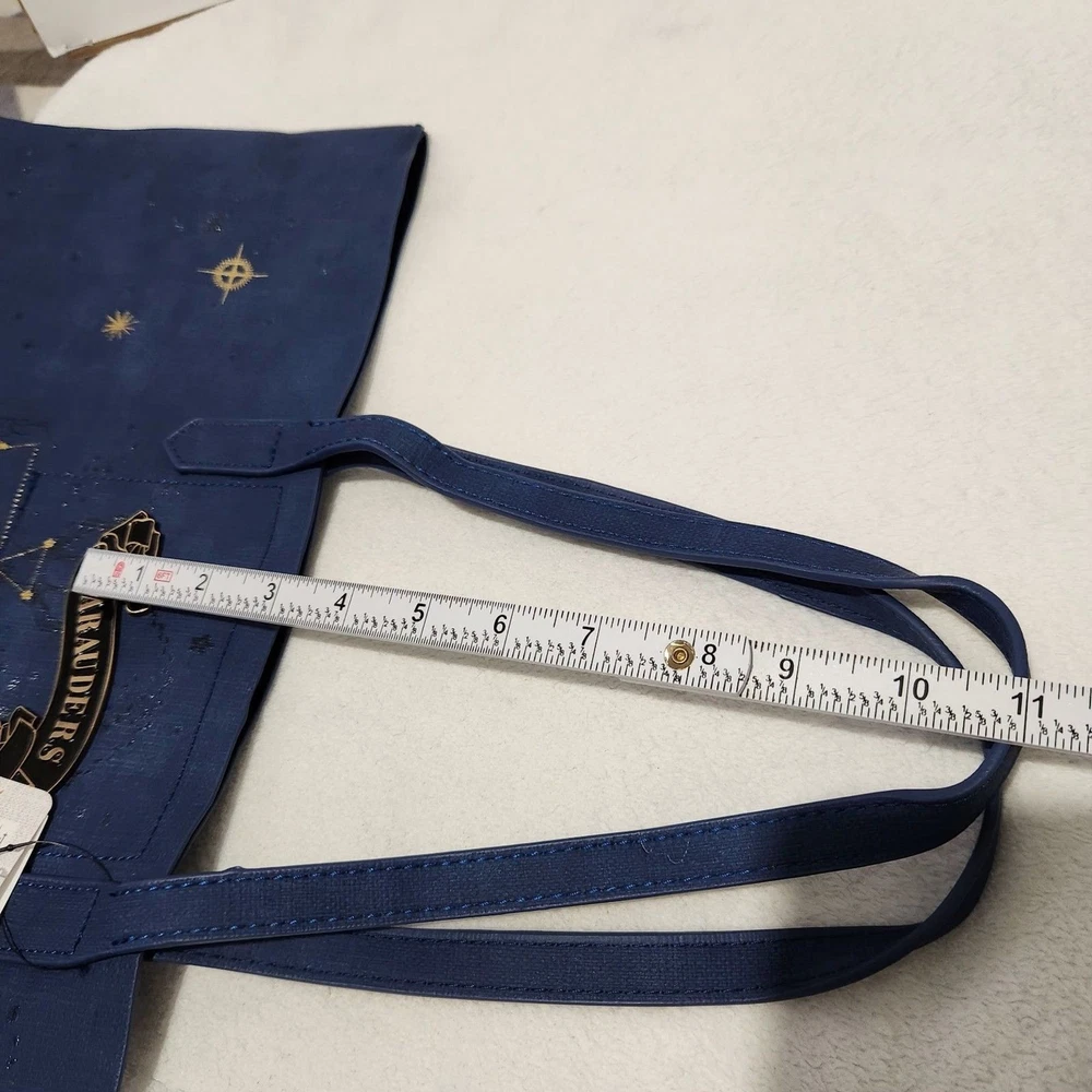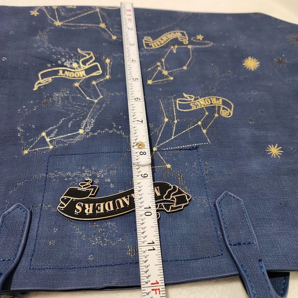 The Harry Potter Marauders Tote Bag is a large blue bag featuring the iconic Harry Potter franchise logo. Measuring 19x12x6 inches, this tote bag is perfect for fans of the fantasy genre and the Harry Potter series. Made by Bioworld, this officially licensed product is ideal for carrying everyday essentials while showing off your love for the magical world of Harry Potter. Perfect for bookworms, witches, and wizards alike, this tote bag is a must-have for any Harry Potter enthusiast.
