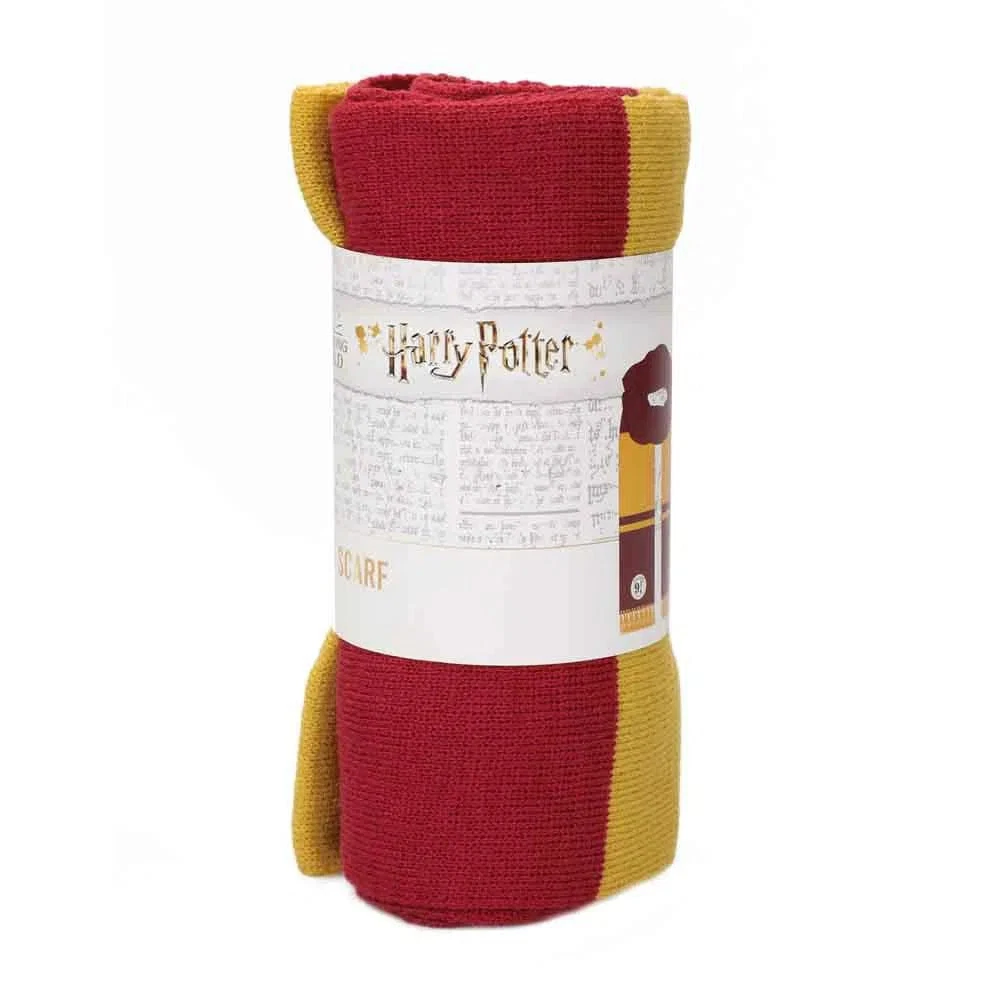 Harry Potter - Platform 9 3/4 Knit Scarf - Bioworld Condition: New Step into the magical world of Harry Potter with the officially licensed Platform 9 ¾ Knit Scarf by Bioworld. Perfect for fans of all ages, this cozy scarf features Gryffindor’s signature red and gold color scheme, with a stylish yellow fringe that adds an extra touch of flair. Adorning the scarf is the iconic Platform 9 ¾ badge, a must-have for any fan ready to board the Hogwarts Express in style. Crafted from high-quality acrylic materials, this scarf is designed for comfort and durability, making it ideal for keeping warm during chilly days. The acrylic ensures it maintains its shape, while the soft knit provides a cozy and snug fit, making it perfect for Harry Potter marathons or outdoor adventures alike. Whether you're attending a Quidditch match or simply braving the cold weather, this scarf has you covered. The custom design featuring the Platform 9 ¾ logo makes this scarf a standout piece in any Harry Potter collection. Easy to care for, simply hand wash in cold water and lay flat to dry to keep it looking as magical as ever. A great gift for any fan of the Wizarding World, the Platform 9 ¾ Knit Scarf is both functional and fashionable.