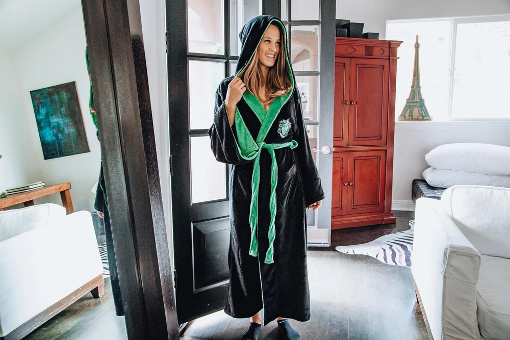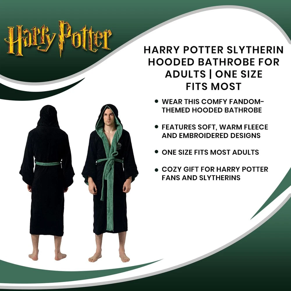 About Us Payment Shipping Returns Contact Us MENU Store Pages About Us Payment Shipping Returns Contact Us Store Categories Costumes & Accessories Apparel Figures & Collectibles Games & Toys Home & Office Party Supplies & Decoration Other Shop by Category Costumes & Accessories Apparel Figures & Collectibles Games & Toys Home & Office Party Supplies & Decoration Other Store Newsletter Sign up to receive special insider notifications of deals, promotions, and new items! SIGN UP Satisfaction Guaranteed Combined Shipping Worldwide Delivery Harry Potter Slytherin Hooded Bathrobe for Adults | One Size Fits Most Click Thumbnails to Enlarge Item Sku: RBF-11355-C Manufacturer: Ukonic Item UPC: 886388113552 Manufacturer ID: 11355 Product Description HARRY POTTER STYLE COMFORT Wrap yourself up in Hogwarts house pride with this Harry Potter Slytherin Adult Bathrobe. Although wizard robes are fun, bathrobes are more practical in the muggle world. Soft and warm, this plush robe is designed to keep you cozy while repping your favorite Hogwarts house. Made of 100% polyester fleece material, this Slytherin Adult Bathrobe is created for ultimate relaxation. The premium-quality material features a lightweight design, ensuring breathability and comfort so that you can be prepared for spellcasting at a moment's notice. Perfect for lounging around, this Harry Potter bathrobe features two front pockets to hold small items (or a chocolate frog for a late night snack), an adjustable belt with loops to keep the robe secure, and an extended wizard hood to complete the look. Suitable for most adults and wizards, this fleece robe is perfect for enjoying some leisure time. CARE INSTRUCTIONS Machine wash cold, gentle cycle Tumble dry low Wrap yourself up in house pride with this Harry Potter Slytherin Robe. Although wizarding robes are nice, bathrobes are more practical in the muggle world, and this one's made from fleece to keep you warm and comfortable while repping your favorite Hogwarts house. Stash your valuables in the pockets (or a chocolate frog for a late night snack) or just use them to keep your hands warm and ready for spellcasting at a moment's notice. Harry Potter Style: Straight from the Wizarding World of Harry Potter is this magical Slytherin Bathrobe. Show off your Hogwarts house pride with this plush robe, designed to look like a comfy wizard-inspired garment. STRAIGHT FROM THE WIZARDING WORLD OF HARRY POTTER: Show off your Gryffindor pride with this Harry Potter bathrobe that looks like wizarding robes! Magical Design: Specially crafted for wizards and muggles alike, this Harry Potter bathrobe is both cozy and fashionable. The plush robe is black and contrasted with a dark green trim. Features an embroidered Slytherin house crest on the chest. MAGICAL DESIGN: Features embroidered Slytherin house crest on chest, contrasting green trim, belt with loops, two pockets, and extended wizard hood. Quality Construction: Made of 100% soft polyester, this premium quality bathrobe features an extra cozy design. Fleece robe features a loose hood, two front pockets, and an adjustable belt. Machine wash cold, gentle cycle. Tumble dry low. QUALITY CONSTRUCTION: 100% polyester. Machine wash cold, gentle cycle; tumble dry low. Geeky Apparel: Suitable for most adults and wizards, this plush robe is perfect for enjoying some leisure time. Take a break after an exhausting day of practicing spells and cozy up on the couch for a Harry Potter marathon. ONE SIZE FITS MOST WIZARDS: Robe Length - 55"; Sleeve Length - 21"; Chest Circumference - 52"; Waist Circumference - 55" Makes A Great Gift: Suitable for lounging and enjoying some personal time, this officially licensed Slytherin Adult Bathrobe keeps the wearer comfy and feeling relaxed. Give Harry Potter fans the gift of comfort with this lightweight fleece robe. GREAT GIFT IDEA: Snuggle up in this bath robe yourself, or gift it to the Harry Potter fan in your life! > Payment Terms TO CHECK OUT Please use the Ebay checkout system to complete the purchase of your item(s). Orders that are not checked out via the Ebay checkout system may be significantly delayed. DON'T LET YOUR EXCITEMENT OF ORDERING GET THE BETTER OF YOU. Please take a moment to check your order over carefully before you pay. Check the Address, the Quantity, the Size (we cannot substitute) and/or Color (when applicable), and the Method of Shipment. Include any special requests in the Notes section of the payment. Never submit an order that is not entirely correct. When you click the "Submit" payment button, you are giving us the go light to process your order ASAP and with our automation, your order is likely to be processed within a few short minutes of receipt of payment, and we simply cannot go back and redo things. One or two minutes of checking now can save much disappointment and inconvenience. PAYMENT OPTIONS Paypal Paypal Echecks (This will delay your order 2 to 10 days) Credit Cards (VISA/MASTERCARD/DISCOVER) If you have any questions or problems when attempting to checkout, you can email us through Ebay . SALES TAX We are required by law to collect Illinois & South Carolina State Sales Tax. All shipments within Illinois & South Carolina will be charged sales tax. IF YOU DO NOT PAY Winning bidder must complete payment within 7 days, unless you are purchasing multiple items. If payment is not received by the 14th day, you will be reported to eBay as a non-paying bidder and the item will be re-listed. ORDER CANCELLATIONS If a bid is accidentally or inappropriately submitted and the bid has not yet been paid for ,then we can request a mutual bid cancellation from eBay upon your notice, but such requests are made solely upon our discretion. However, our ordering system is mostly automatic which means the processing of your order commonly begins within seconds of your payment, so it is not possible to change or cancel a bid once it is paid for. (No exceptions.) Shipping Terms HOW MUCH IS SHIPPING? Plea