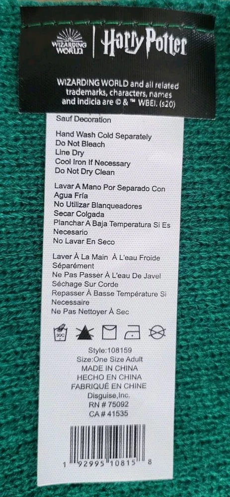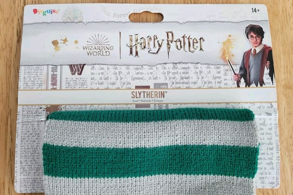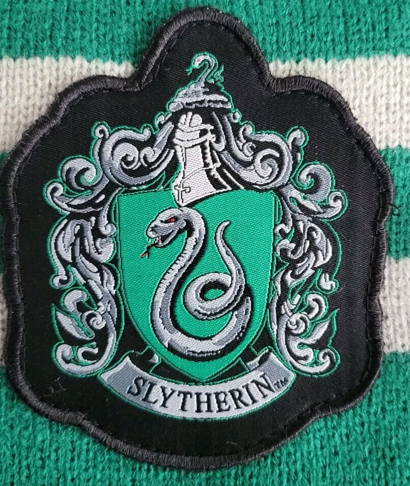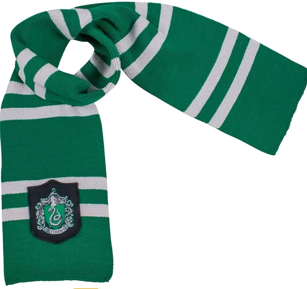 The product is a Harry Potter Slytherin House cosplay knit costume scarf wrap, designed for fans of the fantasy franchise. It features a Vogue style inspired by the iconic Slytherin House from the Harry Potter series, perfect for adding a touch of magic to any cosplay or costume ensemble. Made from high-quality materials and with attention to detail, this scarf wrap allows fans to embody the essence of the Slytherin House while staying true to the fantasy world of Harry Potter. QUALITY HARRY POTTER SCARF - Adult-sized knit Slytherin costume scarf that you can wear to a party as well as on a crisp evening out SHOW YOUR SLYTHERIN PRIDE - Features a Slytherin patch prominently on house colors to tell others where you got your wizarding skills ACCESSORIZE OR COMPLETE YOUR OUTFIT - Authentic, licensed Slytherin scarf inspired by the Harry Potter movies HARRY POTTER SLYTHERIN WINTER WEAR - Great way to accessorize your Draco Malfoy and Professor Snape costumes QUALITY COSTUMES FOR HAPPY PEOPLE - To keep this Slytherin scarf well maintained, it is recommended that it be spot cleaned. Includes one 60 x 7 inch adult sized scarf.