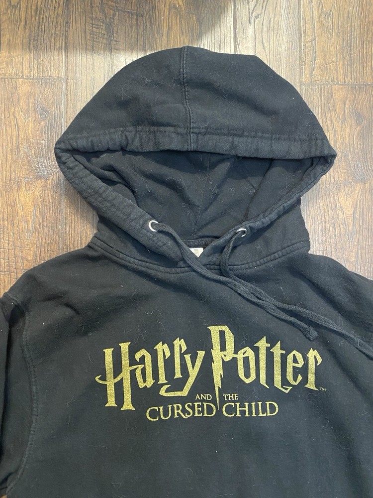 The product is a new black Harry Potter & The Cursed Child hoodie by Independent Trading Company in men's size small. This pullover hoodie features the iconic Harry Potter character and is perfect for fans of the series. It is designed for regular fit and is a stylish addition to any wardrobe, ideal for showing off your love for the wizarding world created by J.K. Rowling.